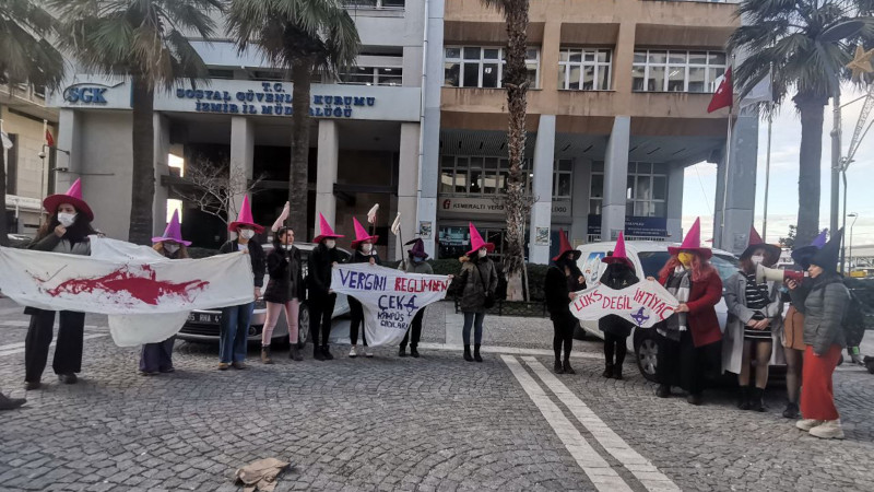 Hijyenik pedlere gelen zamlara ilişkin İzmir Konak’ta eylem yapan Kampüs Cadıları, zamların derhal geri çekilmesini istedi. Kadınlar ayrıca HPV aşısının ücretsiz olması gerektiğini vurguladı