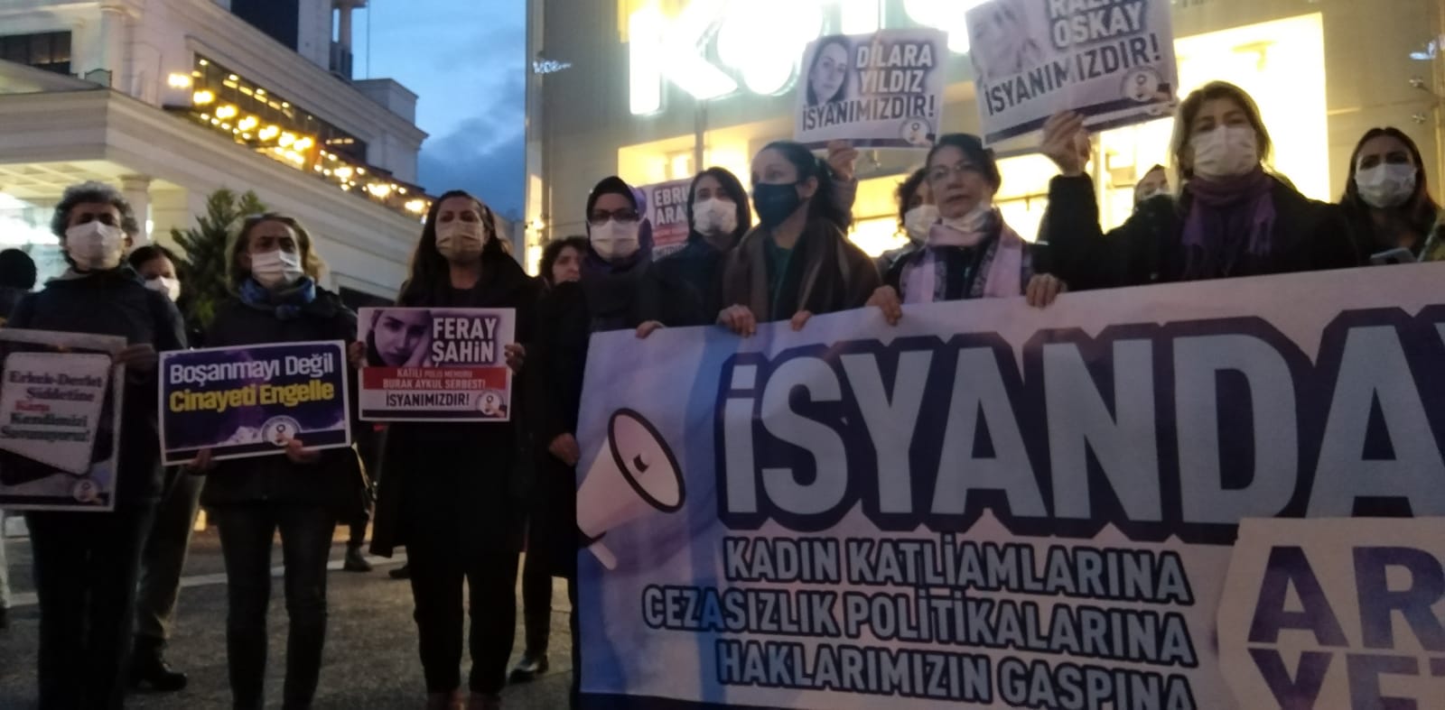Mersin Kadın Platformu katledilen Feriha Temiz, Raziye Oskay, Dilara Yıldı ve Ebru Aras için sokağa çıktı. Pozcu Koton önünde yapılan açıklamaya, katledilen Ebru Aras’ın ailesi de katıldı.