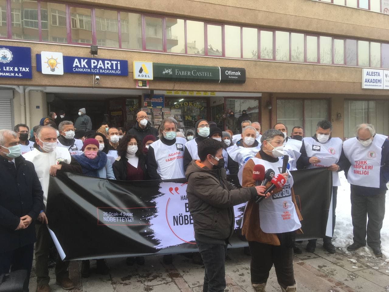 KESK Eş Genel Başkanı Mehmet Bozgeyik, HDP milletvekili Ömer Faruk Gergerlioğlu, CHP milletvekili Murat Emir, SOL Parti ve CHP temsilcileri söz alarak desteklerini sundular. Konuşmaların ardından eylem sonlandırılarak nöbet için TTB Genel Merkezi’ne geçildi.