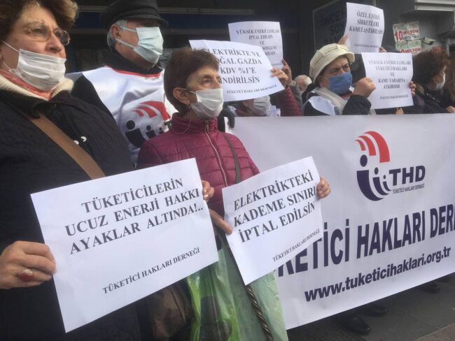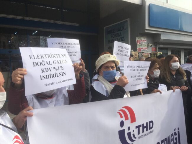 Tüketici Hakları Derneği (THD), yeni yılda gelen zamlara karşı Ankara’da Gazi Mustafa Kemal Bulvarı üzerindeki THD Genel Merkezi önünde “Enerjide tüketiciler soyulacak, şirketler kazanacak” diyerek eylem yaptı. Eylemde zamların geri alınması ve diğer talepler dile getirildi