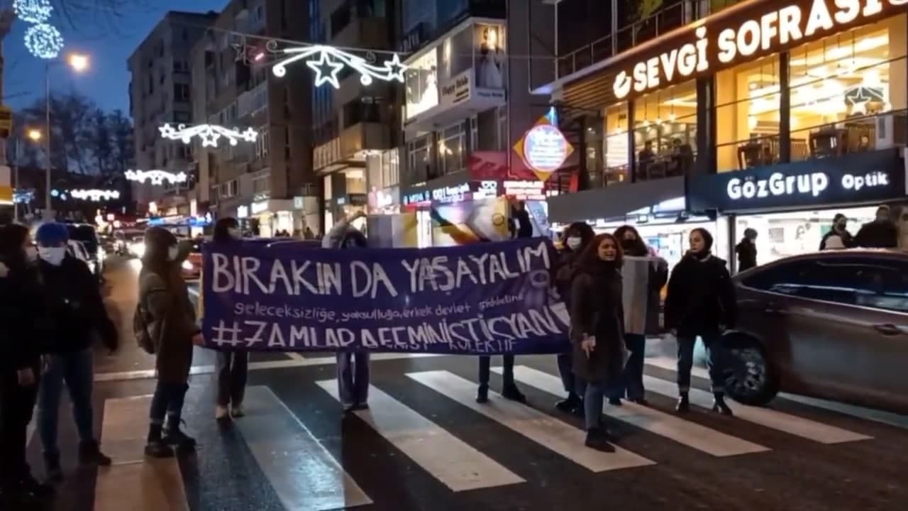 Üniversiteli Feminist Kolektif, yeni yılda gelen zamların ardından derinleşen yoksulluğa karşı “Zamlara feminist isyan” diyerek bir kampanya başlattı. Kampanyanın başlangıç eylemi olarak Tunalı Hilmi Caddesi’nde yol keserek yürüyüş yapan üniversiteli kadın ve LGBTİ+’lar, yeni yılda gelen zamlara tepki gösterdi