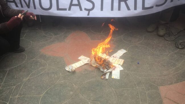 Ankara’da Tüketici Hakları Derneği’nin çağrısı ve çeşitli demokratik kitle örgütlerinin ve siyasi partilerin de destek verdiği eylemde son dönemde gelen enerji zamları protesto edildi. Polisin engelleyemediği eylemde yurttaşlar faturalarını yaktı