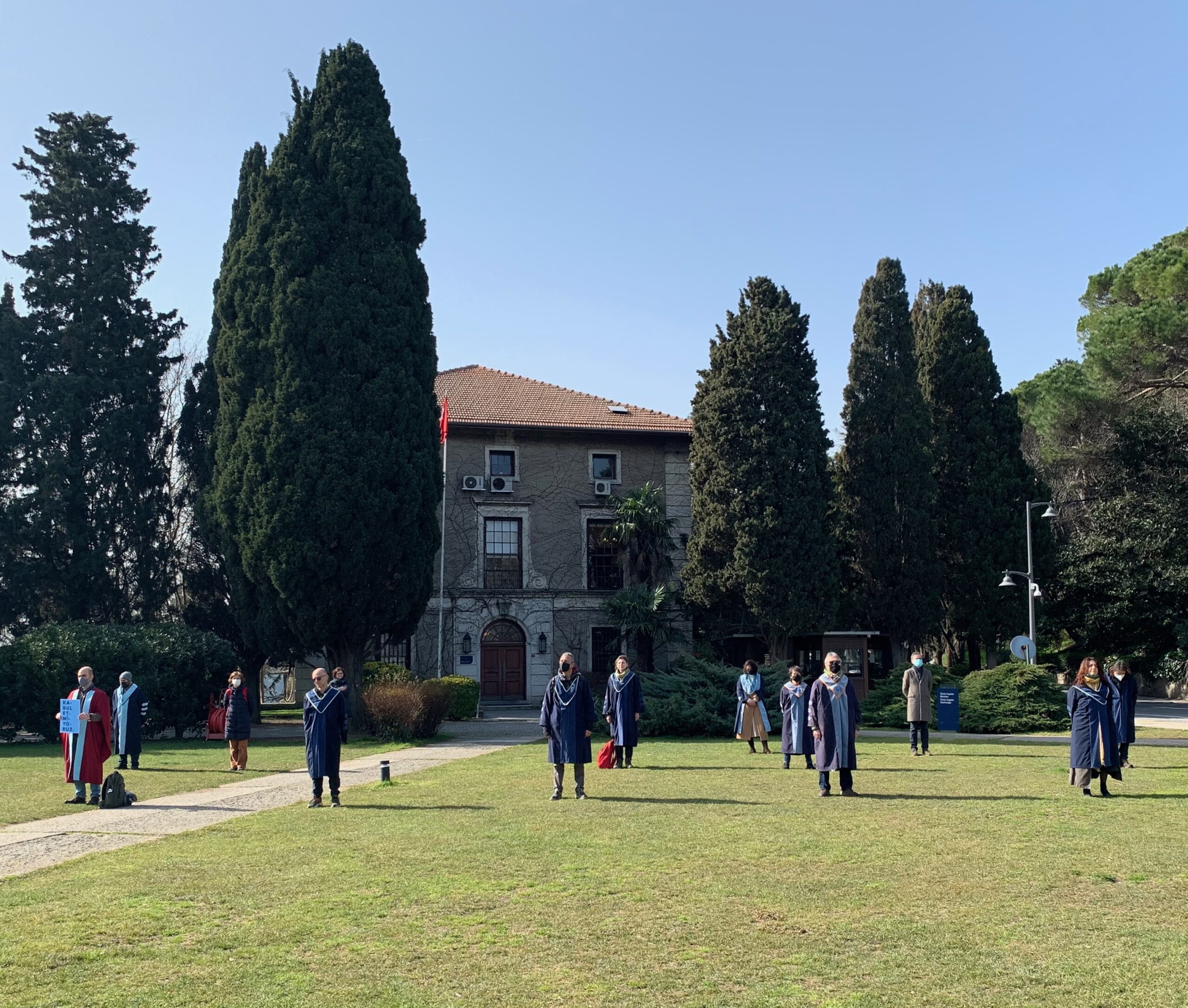 Boğaziçi Üniversitesi akademisyenleri her iş günü olduğu gibi bugün de #KabulEtmiyoruzVazgeçmiyoruz diyerek arkalarını 279. kez rektörlük binasına döndüler. Görevden alınarak, sözleşmeleri yenilenmeyerek ya da dersleri kapatılarak ders vermeleri engellenen, hatta kampüse girişleri de engellenen dört Boğaziçi Üniversitesi akademisyeni derslerine devam edecek