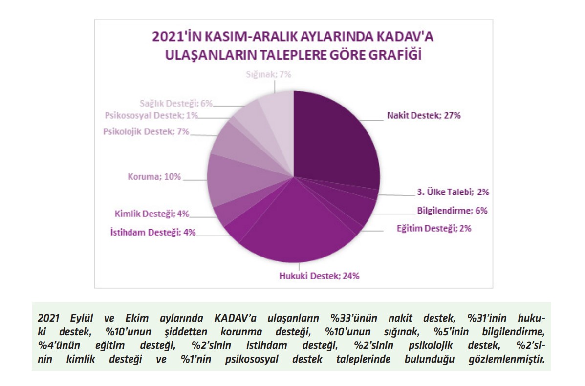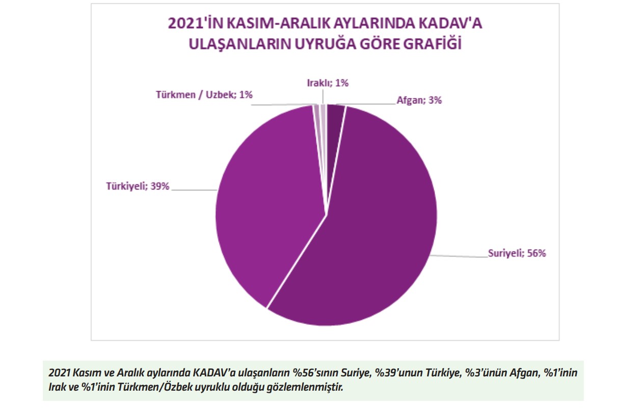 Toplumsal cinsiyete dayalı şiddete maruz bırakılan göçmen ve Türkiyeli kadınlara yönelik dayanışma danışma çalışmaları yürüten Kadınlarla Dayanışma Vakfı (KADAV) 2021 yılı Kasım-Aralık ayı raporunu yayımladı.