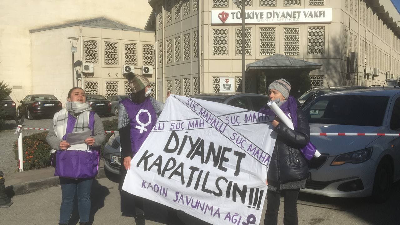 Kadına yönelik şiddetin kaynaklarından birinin Diyanet olduğunu söyleyen kadınlar, açıklamanın ardından eylemi sonlandırdı.