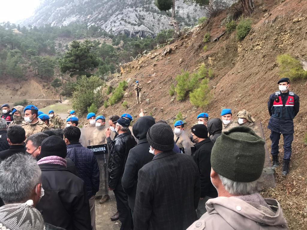 Mermer ocağı için jandarma eşliğinde kesime başlayan yetkilere tepki gösteren ve aralarında astım hastası olan bir yurttaşında bulunduğu 30 kişiye önce biber gazı sıkıldı sonra da gözaltı işlemi yapıldı. 11 köyden bir araya gelen yurttaşlar ifadelerinin ardından sonra serbest bırakıldı. Kesim çalışmaları ise şimdilik durduruldu.