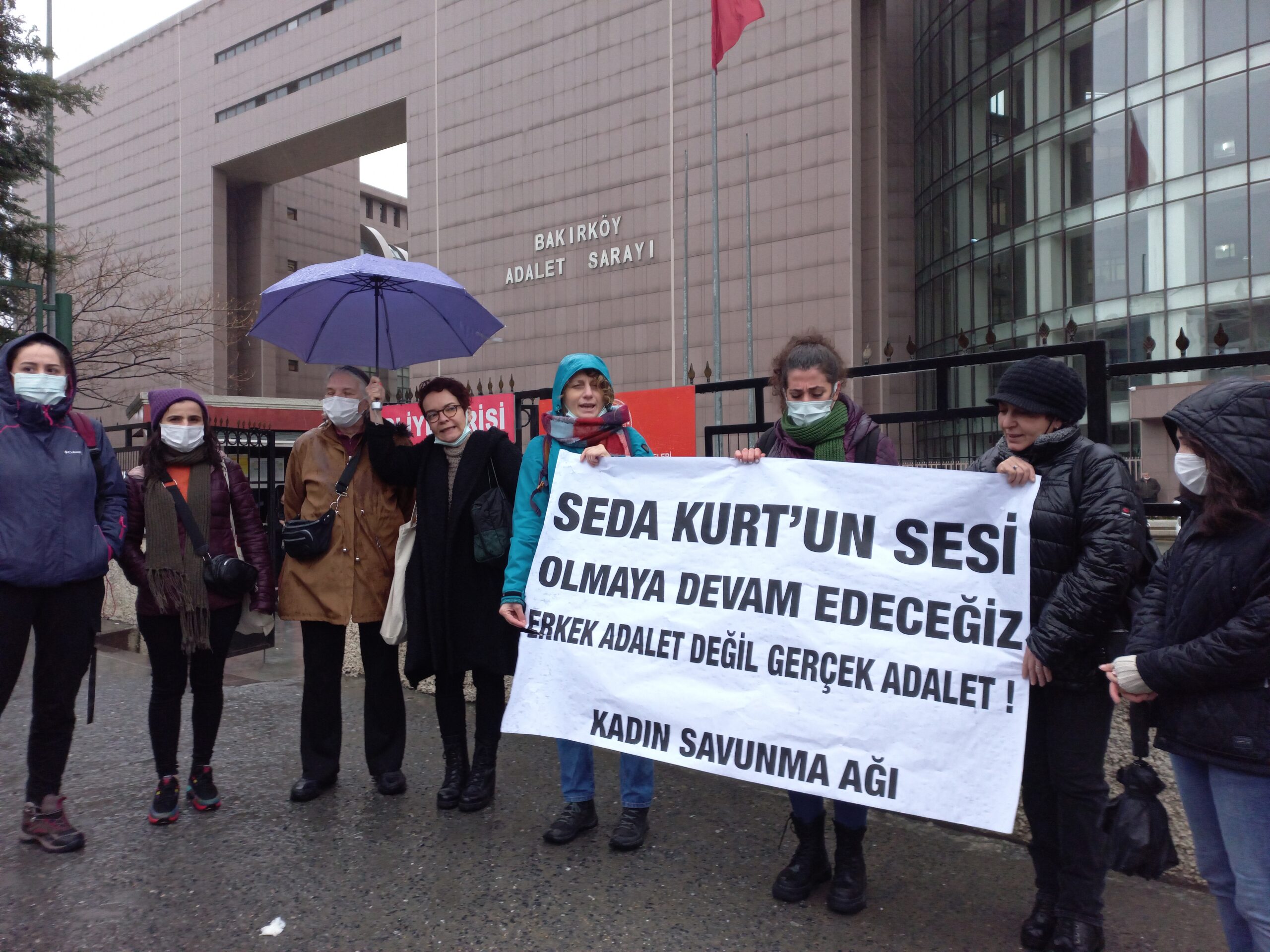 Adliye önünde yapılan konuşmada, “Seda Kurt için adalet aramaya devam ediyoruz. Tam iki buçuk yıldır Seda Kurt davasında hiçbir gelişme kaydetmiş değiliz. Daha önceki kadın cinayetlerinden biliyoruz ki katiller ya ellerini kollarını sallayarak dolaşmakta ya da yurtdışına kaçmakta. Ercan Akkaş, Seda Kurt’u öldürdükten sonra 8 ay boyunca bu mahkeme kapılarında yakalama kararı çıkartmaya çalıştık. 8 ay boyunca karar çıkmadı ve Ercan Akkaş’ın göz göre göre yurtdışına kaçmasına seyirci kalındı. Bizler Seda’nın sesi olmaya Seda için adalet aramaya ve katilinin bulunup yargılanmasını istemeye devam edeceğiz” denildi.