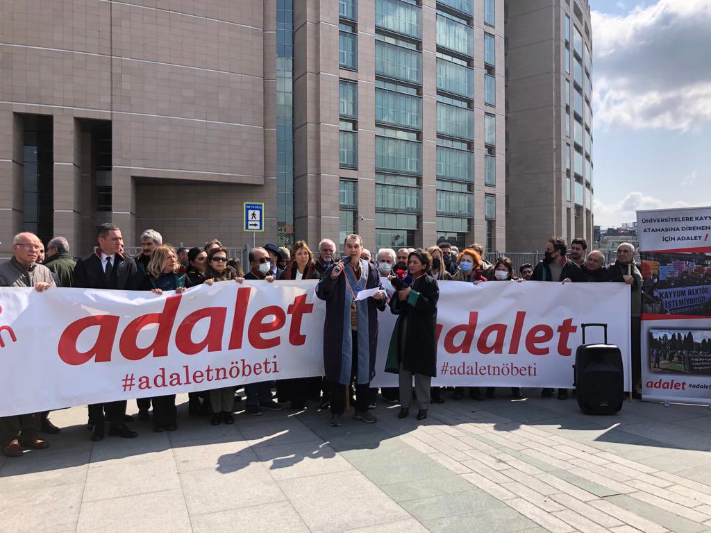 Cumhuriyet gazetesi davasında avukatların tutuklu olduğu 6 Nisan 2017’de avukatlar tarafından başlatılan Adalet Nöbeti’nin 104’üncü buluşmasının gündem maddesi Boğaziçi Üniversitesi’ydi. Boğaziçi Üniversitesi’nde kayyum rektör Melih Bulu’nun görevden alınmasının ve yerine Naci İnci’nin atanmasının ardından Boğaziçili akademisyenlerin nöbet eylemleri sürüyor. Birinci yılını dolduran eylemler devam ediyor.