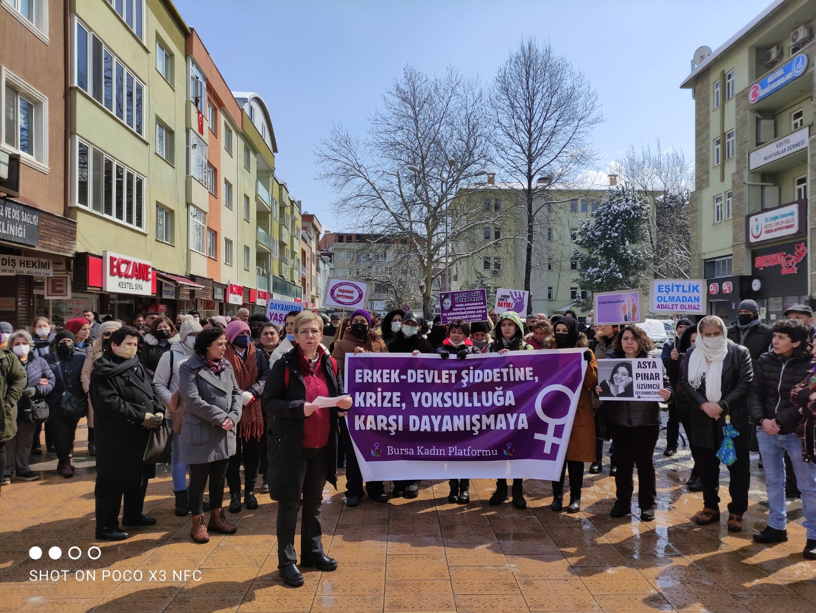 Bursa’da ayrılmak istediği nişanlısı Oktay Hürmet ve arkadaşı Alican Vergül tarafından katledilen Asya Pınar Üzümcü için kadınlar sokaktaydı. Bursa Kadın Platformu, Ziraat Bankası Kestel Şubesi önünde bir basın açıklaması yaptı.
