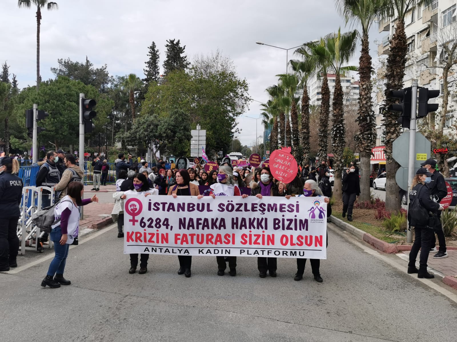 Yaşamın her alanında; ayrımcılığa, cinsiyetçiliğe, yoksulluğa, erkek ve devlet şiddetine karşı direnmeye ve örgütlü mücadelemizi büyütmeye devam ediyoruz.