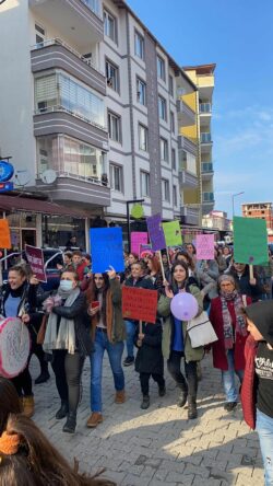 Bugün de dinmeyen öfkemiz, büyüyen dayanışmamız, isyanımız ile her gün haykırdığımız eşitlik ve özgürlük sloganlarımızı birleştirmeye, 8 Mart’ın direnişçi ruhuyla tüm dünyada haykırılan seslere ses olmaya geldik. Geceleri, sokakları, meydanları, dünyanın tamamını istiyoruz. Dünyanın her yerinde haklarımızı, özgürlüğümüzü kazanıncaya kadar mücadelemiz sürecek.