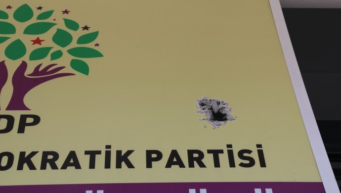 HDP Mersin Erdemli İlçe binasına gece saatlerinde “kimliği belirsiz” kişi veya kişilerce silahlı saldırı yapıldı. Saldırıda partinin tabelasına kurşun isabet etti