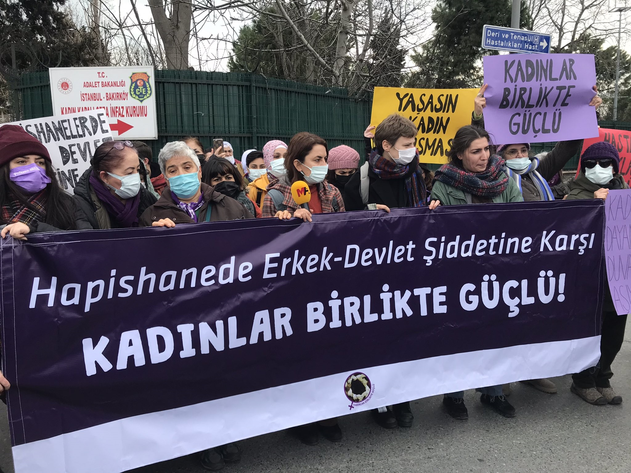 Kadınlar Birlikte Güçlü, “Hapishanede erkek devlet şiddetine karşı kadınlar birlikte güçlü” yazılı pankart açarak Bakırköy Kadın Kapalı Cezaevi önünde bir araya geldi.