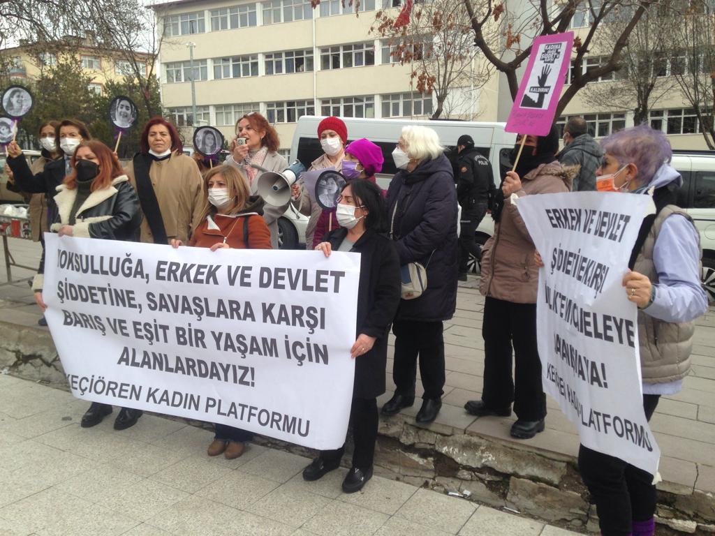 Ankara’da Keçiören Kadın Platformu’nun çağrısıyla Direniş Parkı’nda bir araya gelen Keçiörenli kadınlar, yaptıkları basın açıklamasıyla 6 Mart’ta Anıtpark’ta yapılacak mitinge ve 8 Mart’ta yapılacak feminist gece yürüyüşüne çağrı yaptı.