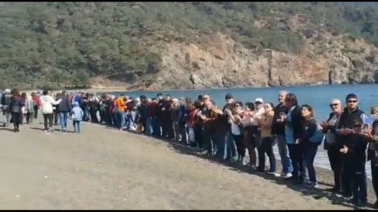 Fethiye Belediyesi’nin işlettiği İnlice Halk Plajı’nın, Çevre ve Şehircilik Bakanlığı tarafından boşaltılması istenince Muğlalılar plajda insan zinciri kurarak özelleştirme riskine karşı eylem yaptı