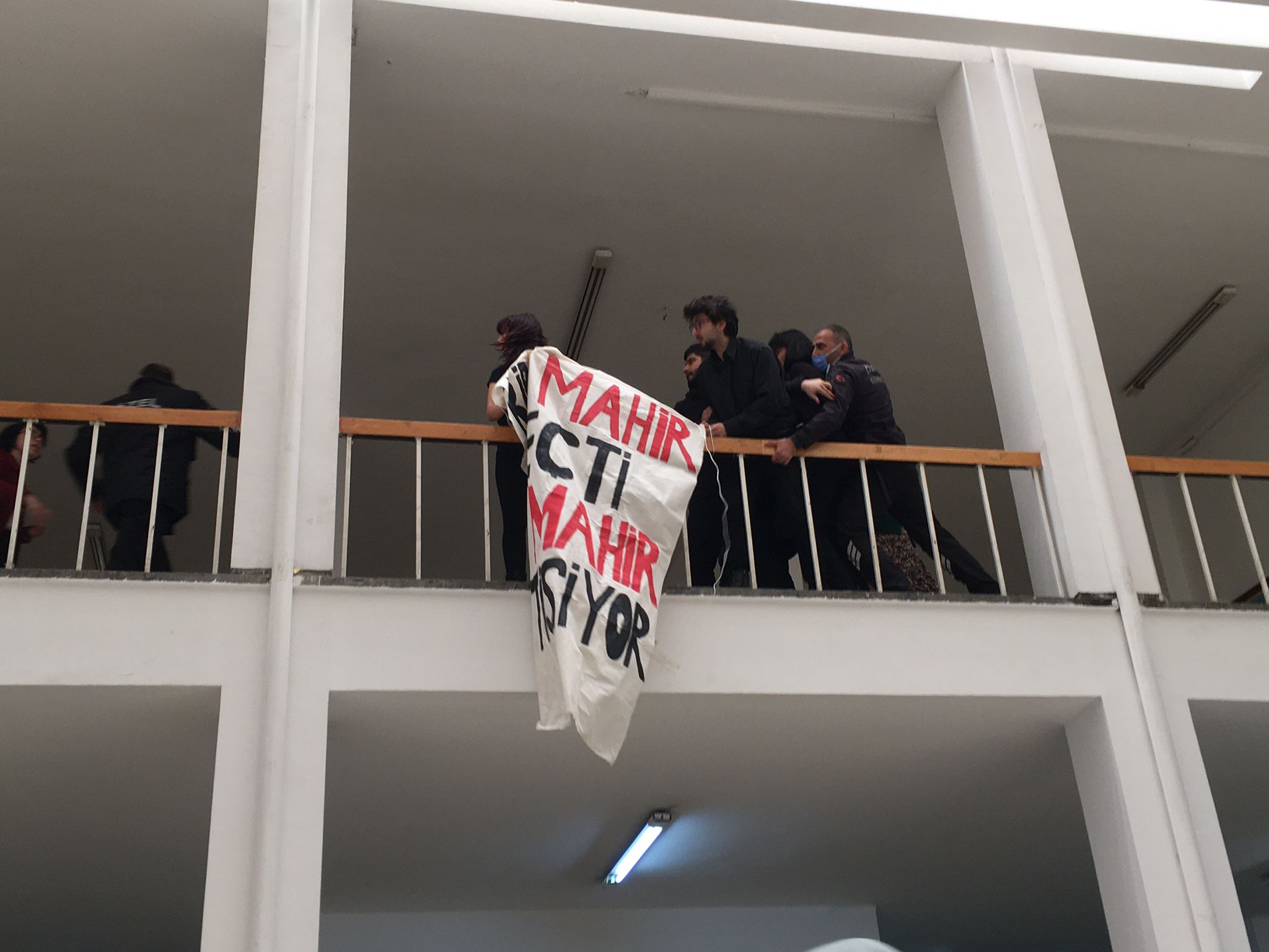 Ankara Üniversitesi Siyasal Bilgiler Fakültesi’nde üniversitelilerin Kızıldere’de ölümsüzleşen THKP-C ve THKO militanları için yapmak istedikleri anmaya önce üniversitenin özel güvenliği saldırdı. “Bir Mahir geçti bin Mahir yetişiyor” yazılı pankart açılmasına engel olan özel güvenlik, üniversitelileri anmanın yapılacağı alandan da uzaklaştırmaya çalıştı.