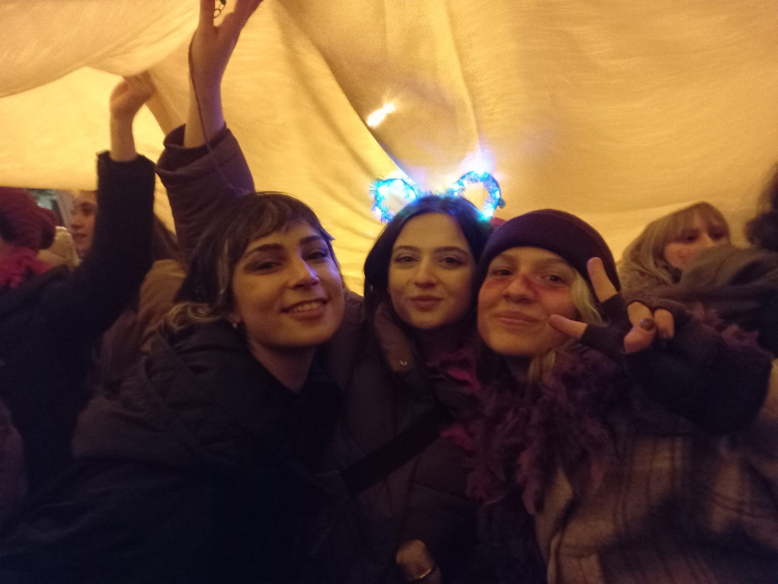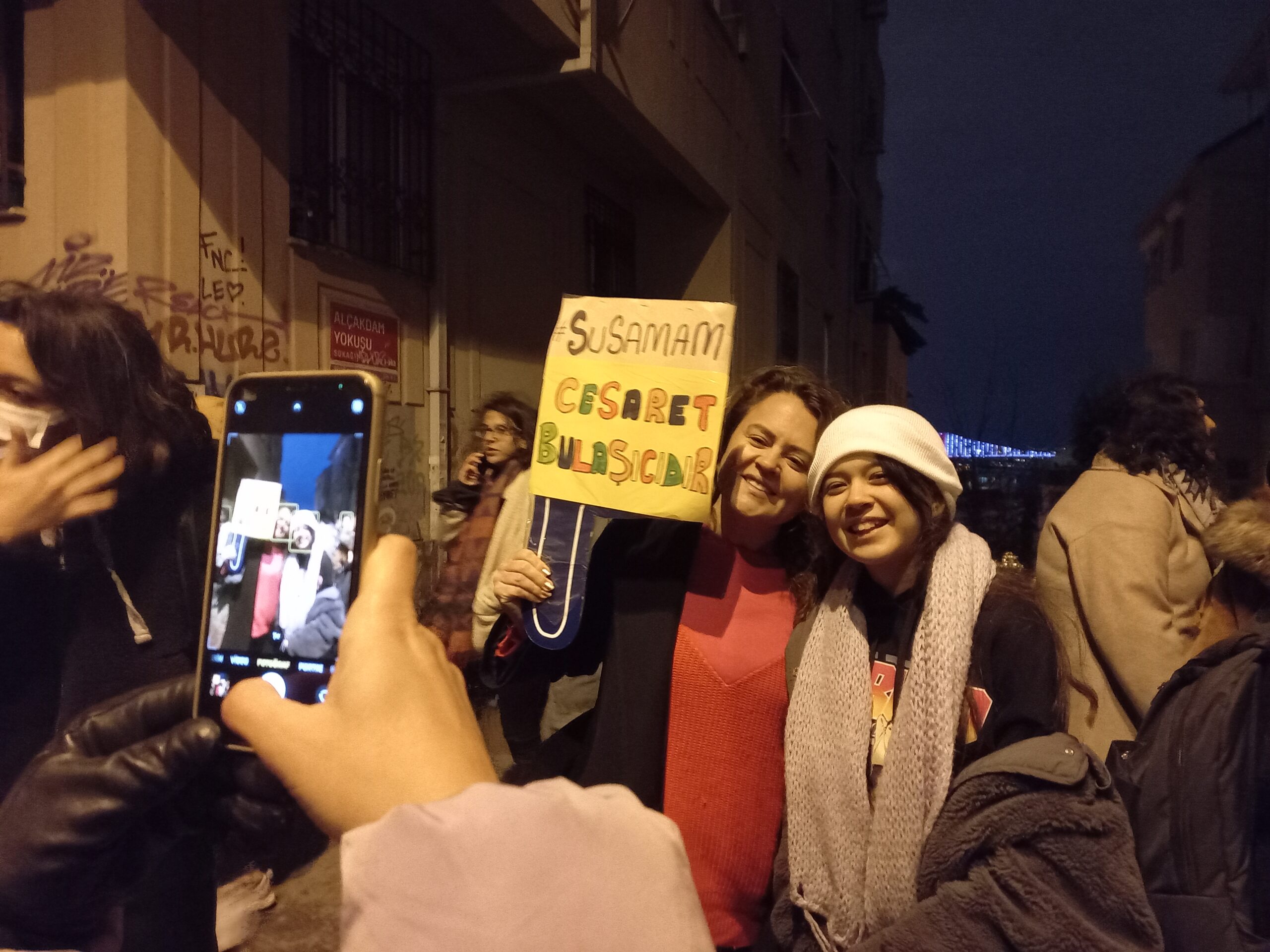 Açıklamanın ardından kadınlar ve LGBTİ+’lar telefonlarının flaş ışıklarını açarak geceyi aydınlattı.