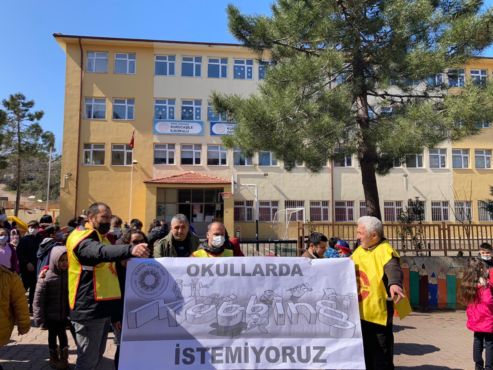 Bartın Kurucaşile İlk ve Ortaokulu Müdürü, pandemi dönemindeki çalışmalarından dolayı öğretmenlerin şahsına tanımlanan başarı belgelerini öğretmenlerin MEBBİS modülüne girerek çıkarıp törende takdim etti. Başarı belgesi almayan öğretmenlerin ve ücretli öğretmenlerin de isimlerini okuyarak öğretmenleri rencide eden müdür, Eğitim Sen tarafından protesto edildi
