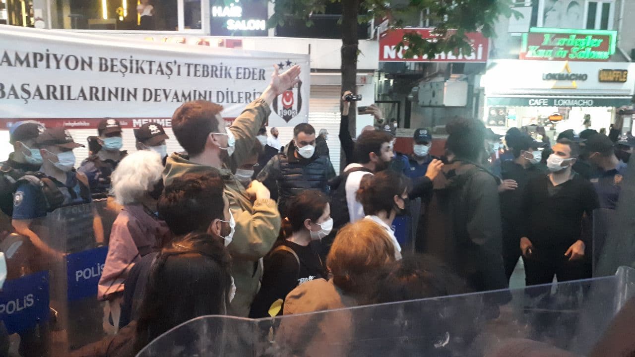 Taksim’de yapılan açıklamaya katılanların da meydana ulaşmasının ardından kitle pankart açarak slogan atmaya başlayınca polis eylemcilerin etrafını çevirerek gözaltı aracını getirirken, eylemcileri de darp ederek gözaltına almıştı.