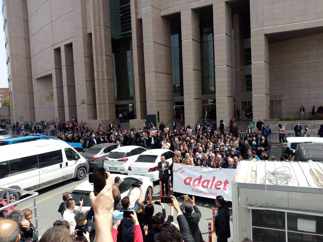 Gezi Davası’nda verilen hapis cezalarını protesto için Çağlayan Adliyesi önünde Adalet Nöbeti düzenlendi. Avukatlar, Çağlayan Adliyesi içinde yakalarında meslektaşları Can Atalay’ın fotoğrafını taşıyarak dava kapsamında verilen hapis cezalarını protesto etti. Adliye önünde açıklamalar yapıldı