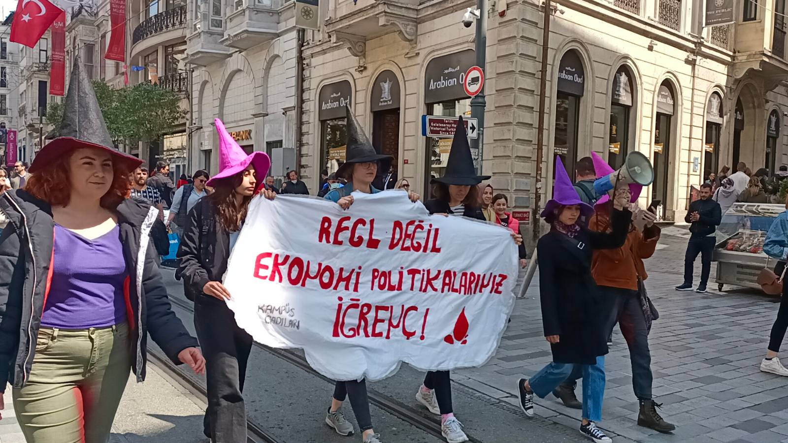 İstiklal Caddesi'nde "Regl ürünleri lüks değil temel ihtiyaçttır. Kadın yoksulluğunu görmezden gelemezsiniz." diyen 6 Kampüs Cadıları üyesi gözaltına alındı.