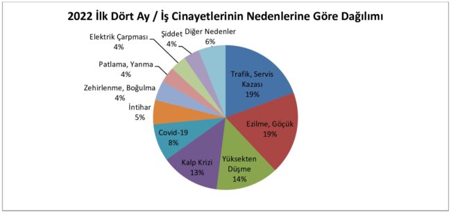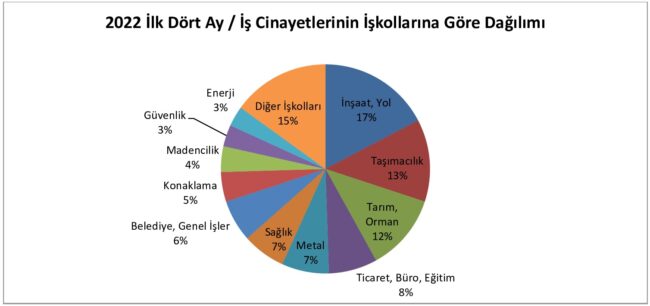 İşçi Sağlığı ve İş Güvenliği (İSİG) Meclisi’nin yayımladığı iş cinayetleri raporuna göre 2022 yılının ilk dört ayında en az 479 işçi çalışırken hayatını kaybetti. Raporda Nisan ayıyla birlikte güvencesiz çalışmanın en yoğun olduğu inşaatlarda ve tarımdaki iş cinayetlerinde bir artış meydana geldiği ifade edildi.