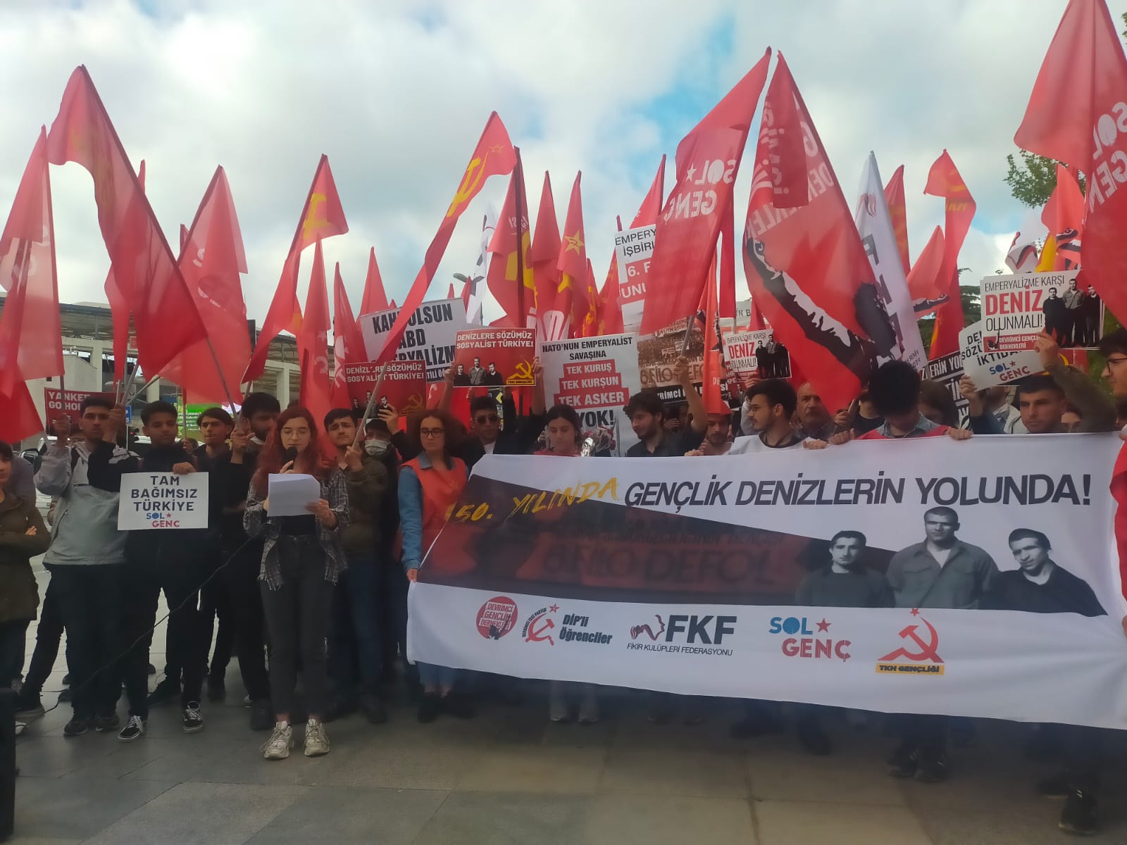 Sonrasında Emek Gençliği de Deniz Gezmiş, Yusuf Aslan ve Hüseyin İnan’ın idamlarının 50. yılında Taksim AKM önünde “Yusuf, Hüseyin, Deniz sürüyor, sürecek mücadelemiz” sloganıyla 6. Filo’nun denize döküldüğü yere Dolmabahçe’ye yürüdü.