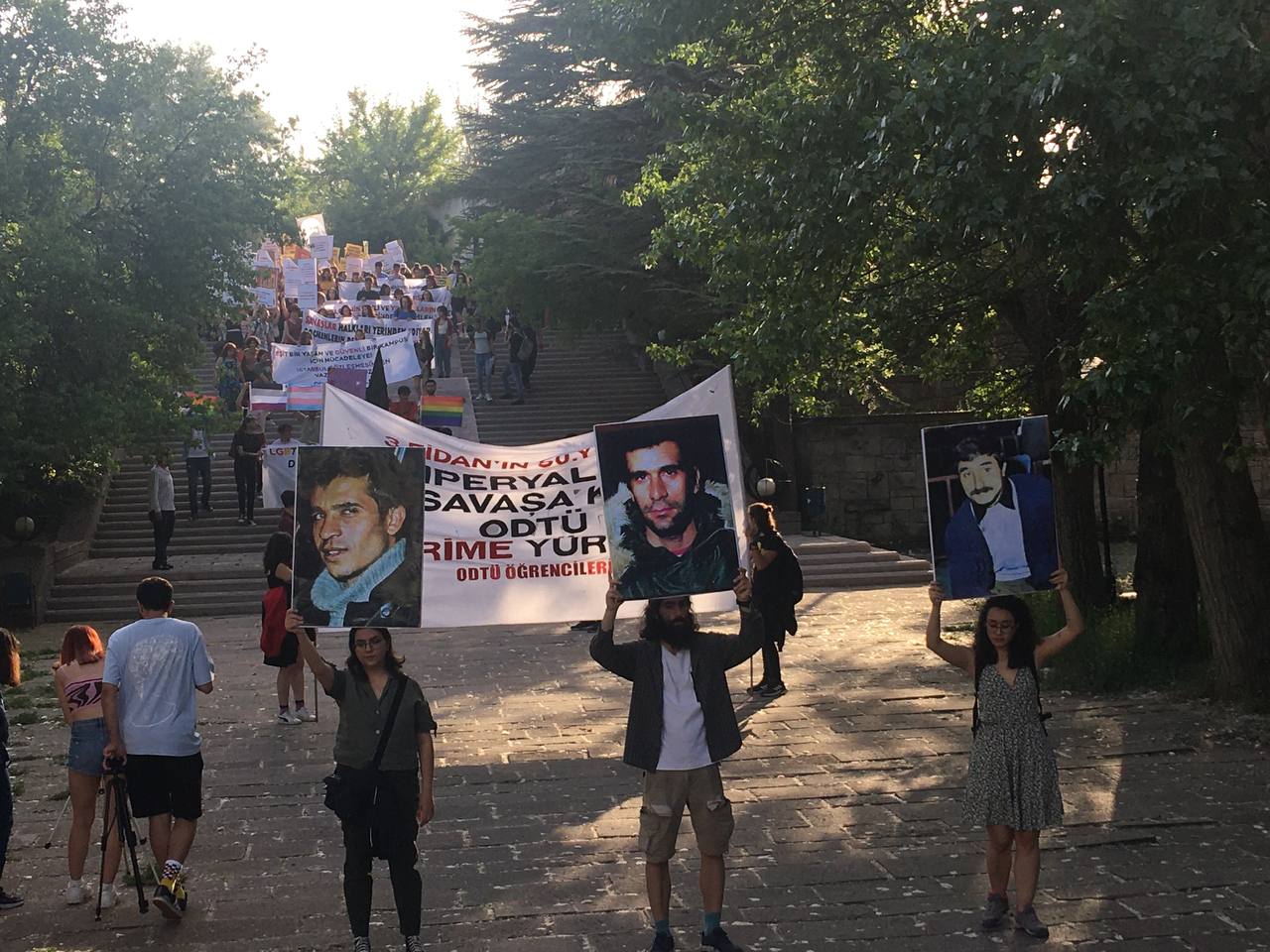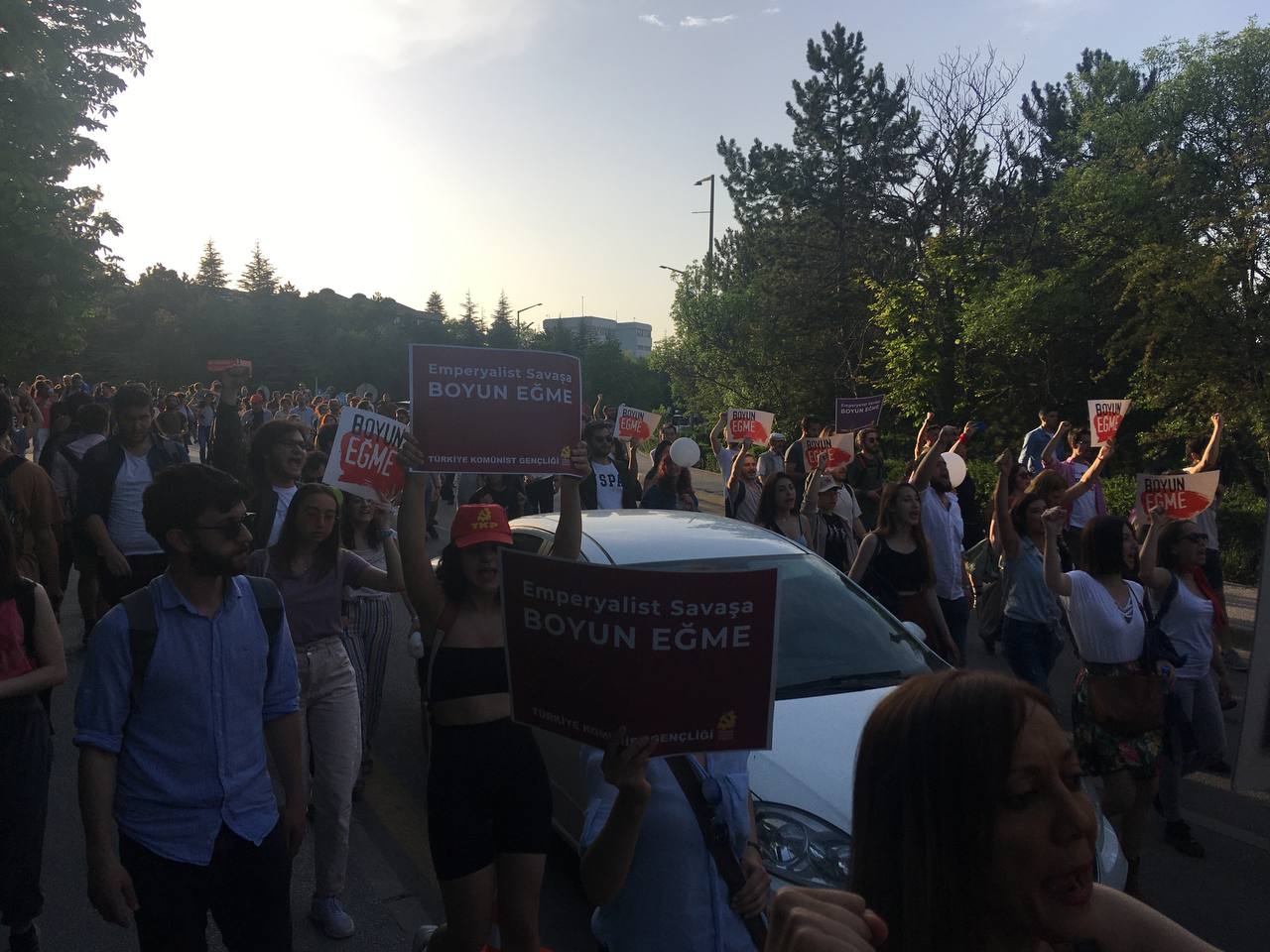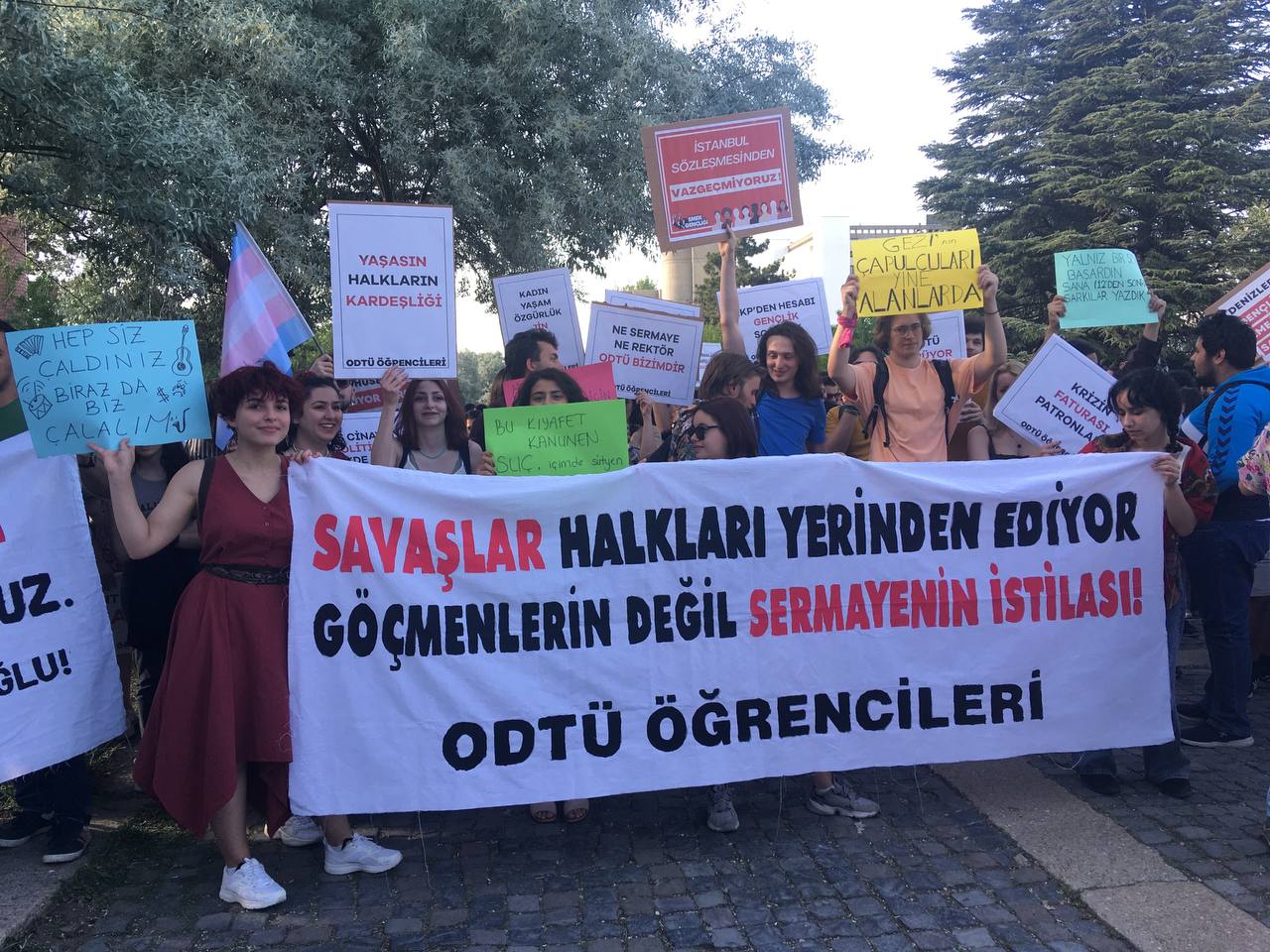 Üniversiteliler adına yapılan açıklamada şöyle denildi: “ODTÜ öğrencileri olarak, savaşa karşı barışı, gericiliğe karşı bilimi, emperyalizme karşı özgürlüğü savunmaya, üniversitede haklarımız ve taleplerimiz için bir araya gelmeye devam edeceğiz. Tüm üniversite bileşenlerini, tüm üniversite gençliğini, tek adamın bizlere dayattığı koşulların karşısında mücadele etmeye, hayalini kurduğumuz eşit ve özgür geleceği birlikte mücadelemizle kurmaya çağırıyoruz.”