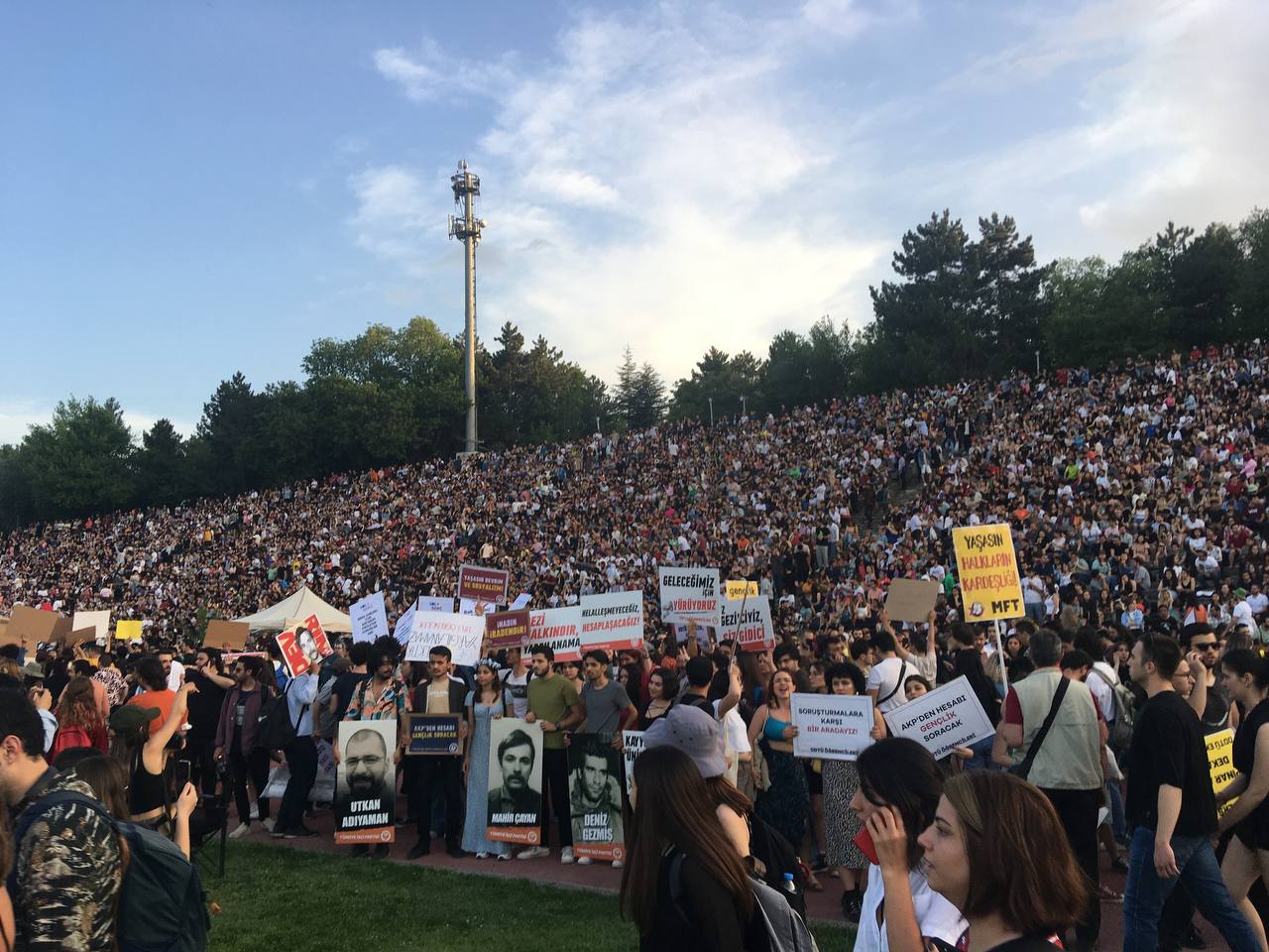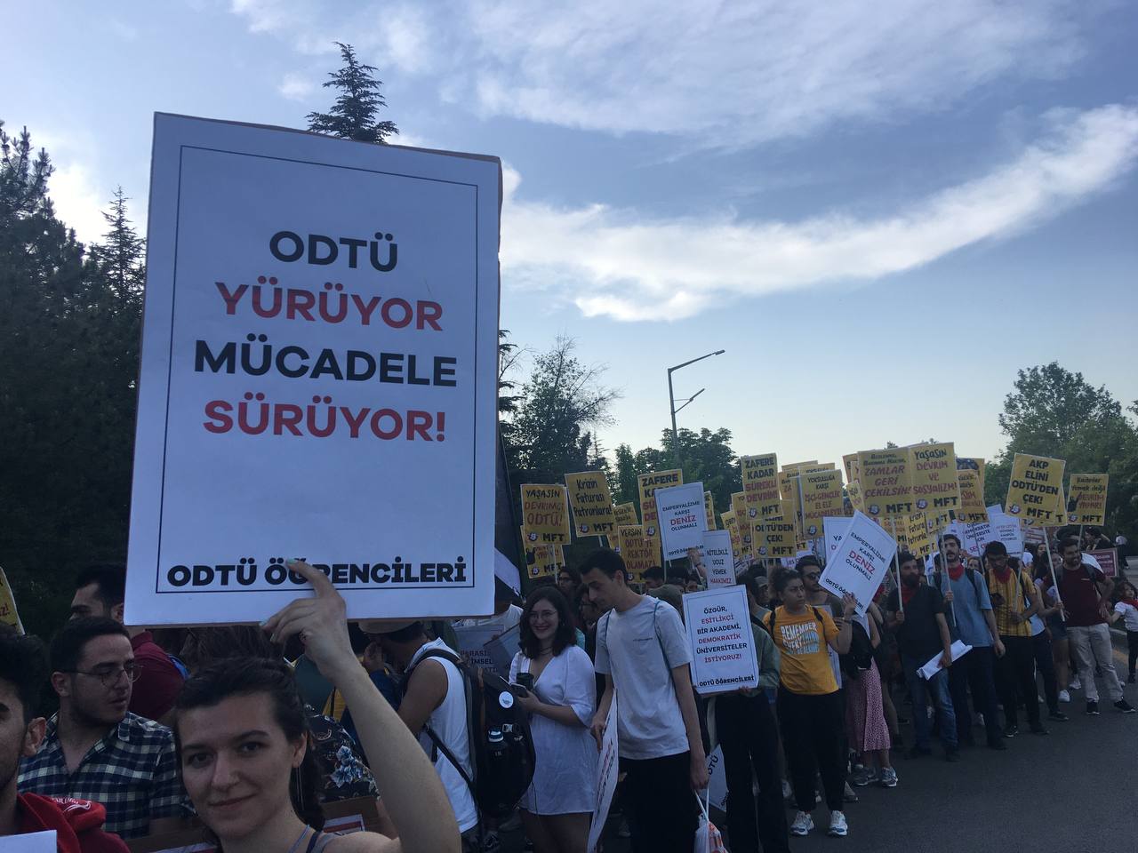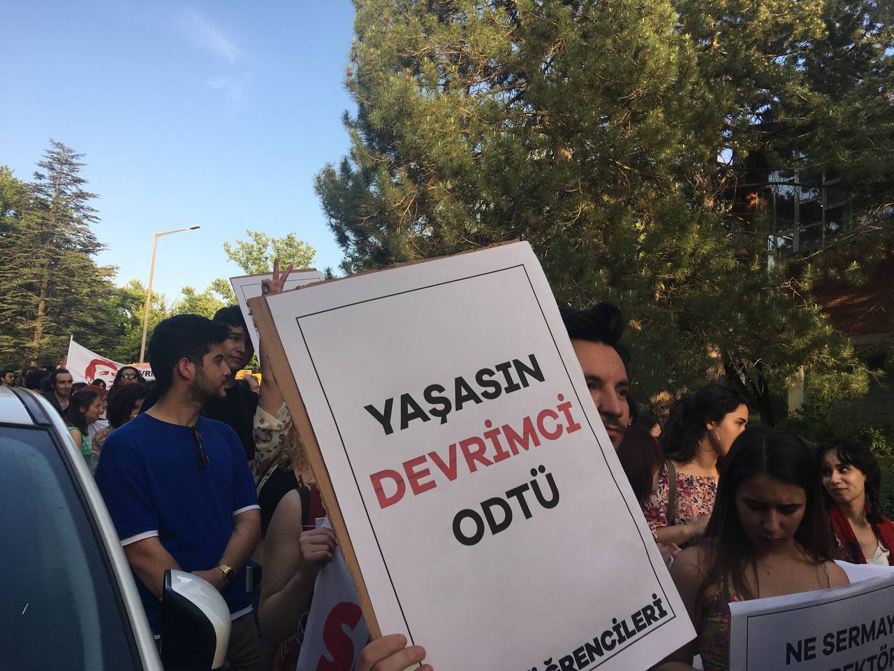 Üniversiteliler adına yapılan açıklamada şöyle denildi: “ODTÜ öğrencileri olarak, savaşa karşı barışı, gericiliğe karşı bilimi, emperyalizme karşı özgürlüğü savunmaya, üniversitede haklarımız ve taleplerimiz için bir araya gelmeye devam edeceğiz. Tüm üniversite bileşenlerini, tüm üniversite gençliğini, tek adamın bizlere dayattığı koşulların karşısında mücadele etmeye, hayalini kurduğumuz eşit ve özgür geleceği birlikte mücadelemizle kurmaya çağırıyoruz.”