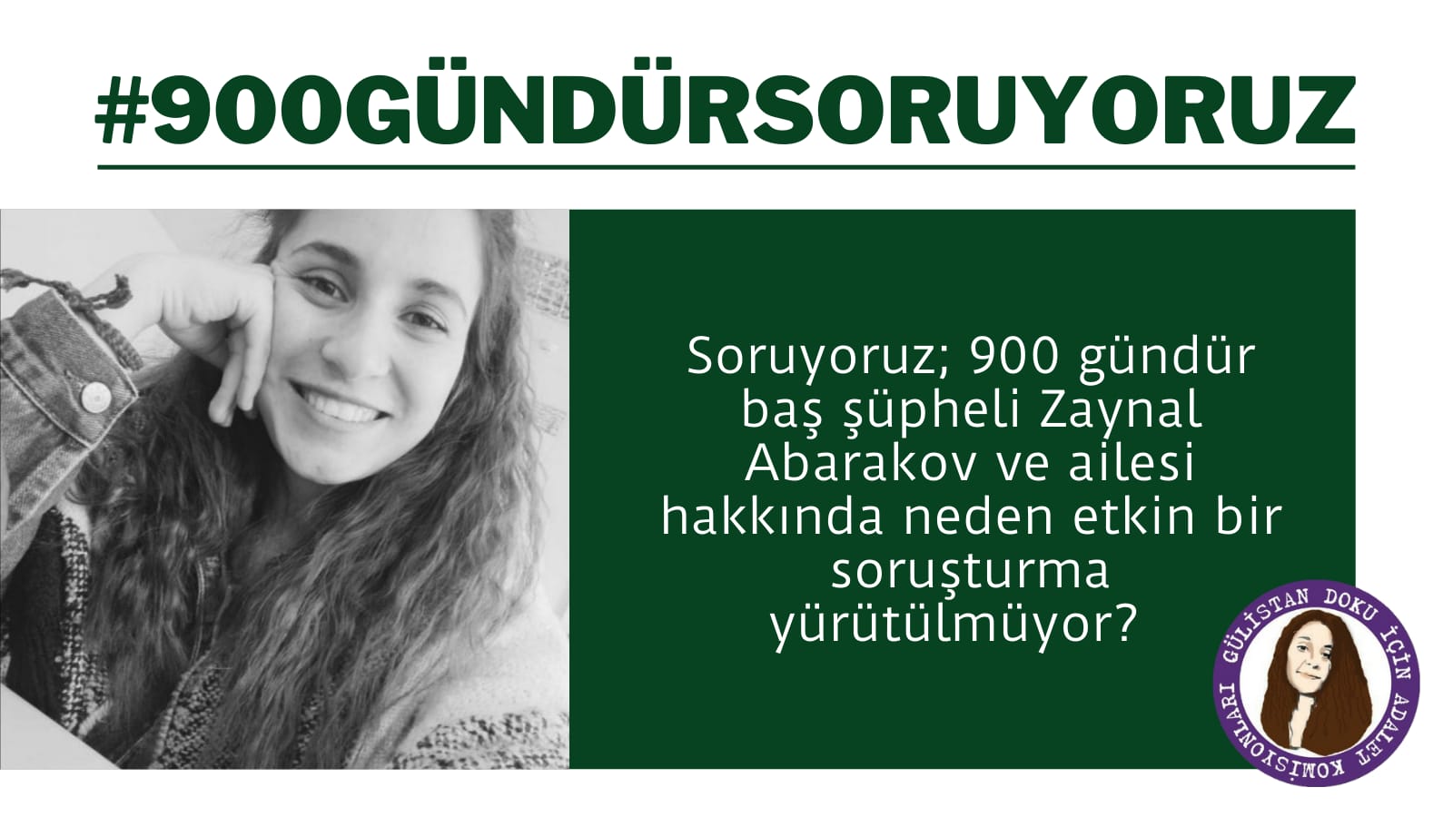Soruyoruz; 900 gündür baş şüpheli Zaynal Abarakov ve ailesi hakkinda neden etkin bir soruşturma yürütülmüyor? Derhal Zaynal Abarakov ve ailesi hakkinda etkin soruşturma yürütülsün!#900GündürSoruyoruz #GülistanDokuNerede pic.twitter.com/M2HOw2sDQE
