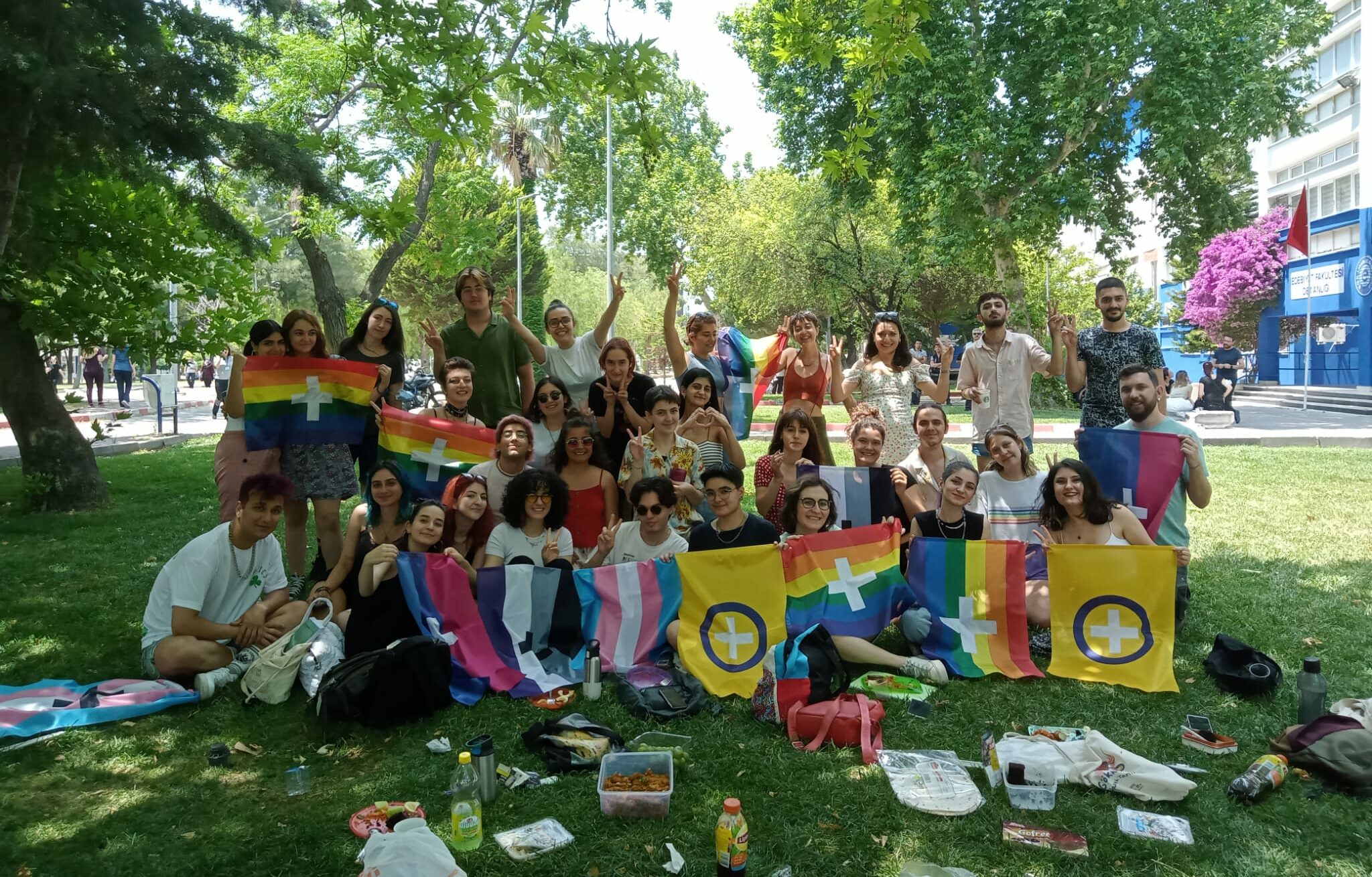 Vardık, varız, var olacağız: #EgeOnurPikniğindeyiz | Ege Üniversiteli LGBTİ+’lar Onur Pikniği için Edebiyat Fakültesi önünde toplamaya başladı.