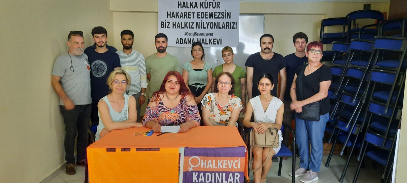 “Recep Tayyip Erdoğan’ın “sürtük” ve “çürük” ifadelerini kullanarak milyonlarca insana hakaret ettiği gerekçesiyle Adana Halkevi şube yöneticileri olarak suç duyurusunda bulunacağız. Yaşasın Gezi Direnişimiz”