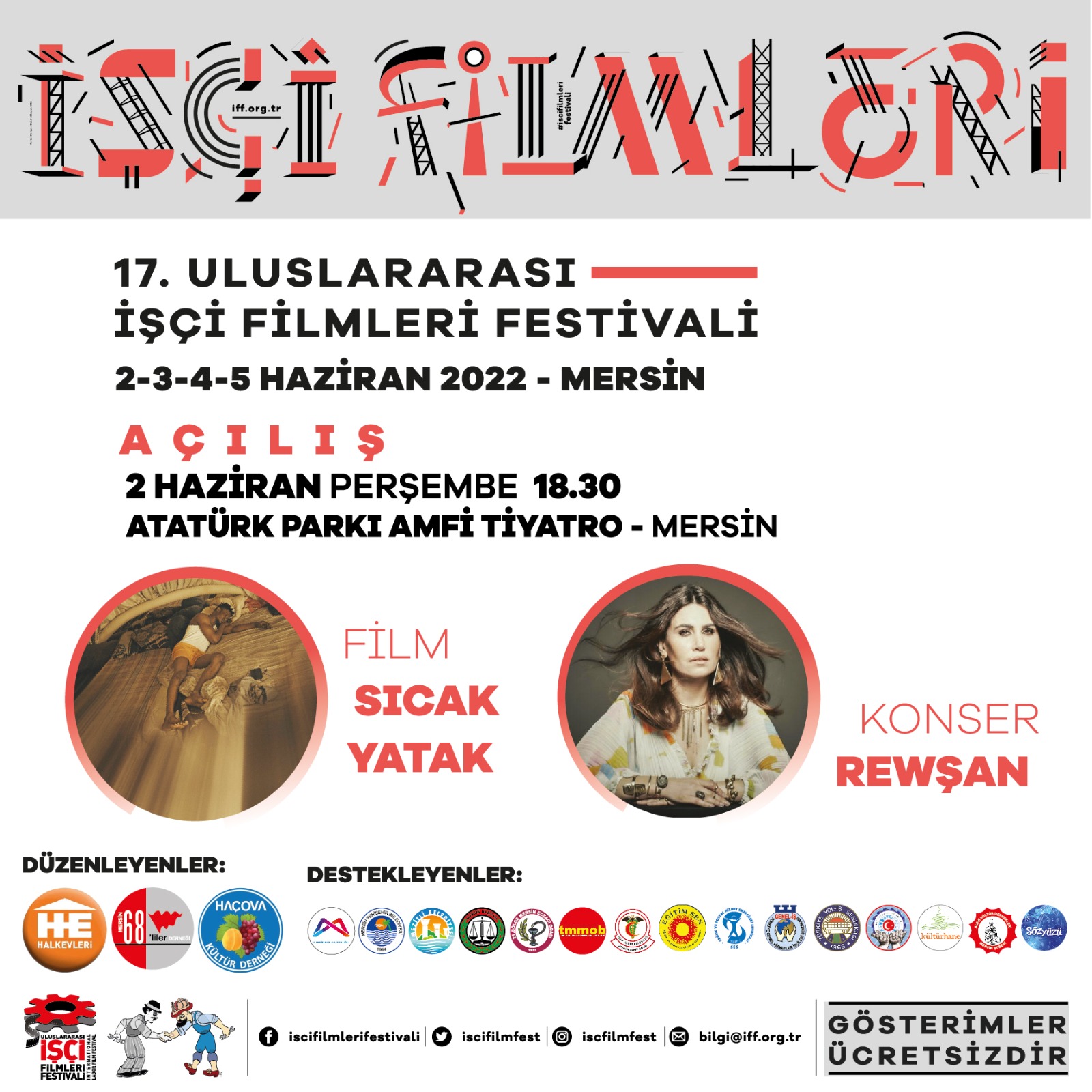 Bu yıl 17. kez düzenlenen Uluslararası İşçi Filmleri Festivali (İFF), Mersin’de 2-3-4-5 Haziran tarihlerinde 20 ülkeden 69 filmi, yine sponsorsuz, yarışmasız ve ücretsiz seyirci ile buluşturacak.