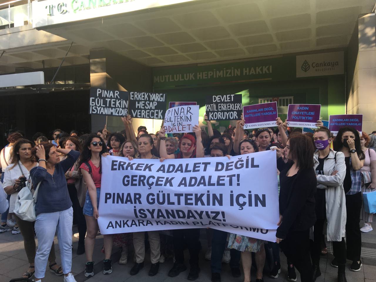 Ankara Kadın Platformu’nun çağrısıyla kadınlar Sakarya Caddesi’nde bir araya geldi. “Erkek adalet değil gerçek adalet. Pınar Gültekin için isyandayız” yazılı pankart açan kadınlar basın açıklaması yaptı.