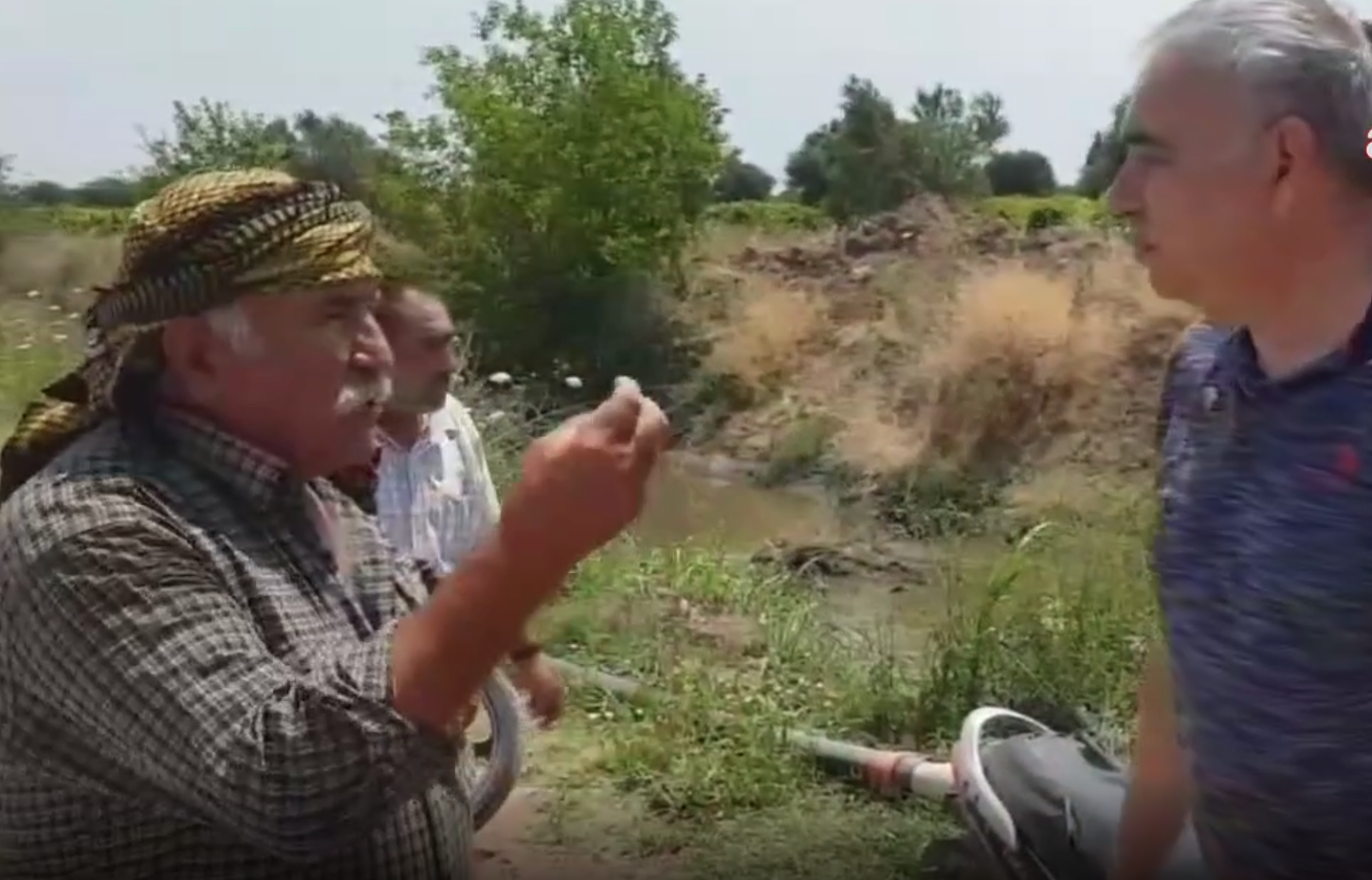 önce buradan balık tutuyorduk, sebze yetiştiriyorduk. Kanalın suyundan, arkadaş yoncasını suladı, iki saat içerisinde yonca kurudu. Ben, 62 yaşındayım. Bizim atalarımız, dedelerimiz, bu Gediz’den su içiyorlardı. Buradan çok güzel balıklar çıkıyordu. Bir tane canlı yok şimdi. Buralar Cumhurbaşkanı kararıyla kamulaştırmaya açıldı. Fakat o işte başarılı olamadı. Bir kısım yerleri aldılar. Bizim meralarımız var. Daha önce köyümüze aitti, şimdi belediyeye geçti. İhtiyacı olan vatandaşlar sattı. Başka yere satamıyoruz. Başka yere sattırmıyor. Bu saatten sonra nereye gidelim, bu çocuklar nereye gider?