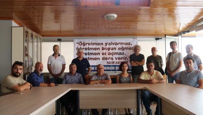Eğitim Sen Mersin Şubesi’nde yapılan açıklamayı Şube Eş Başkanı Mahmut Sümbül okudu.