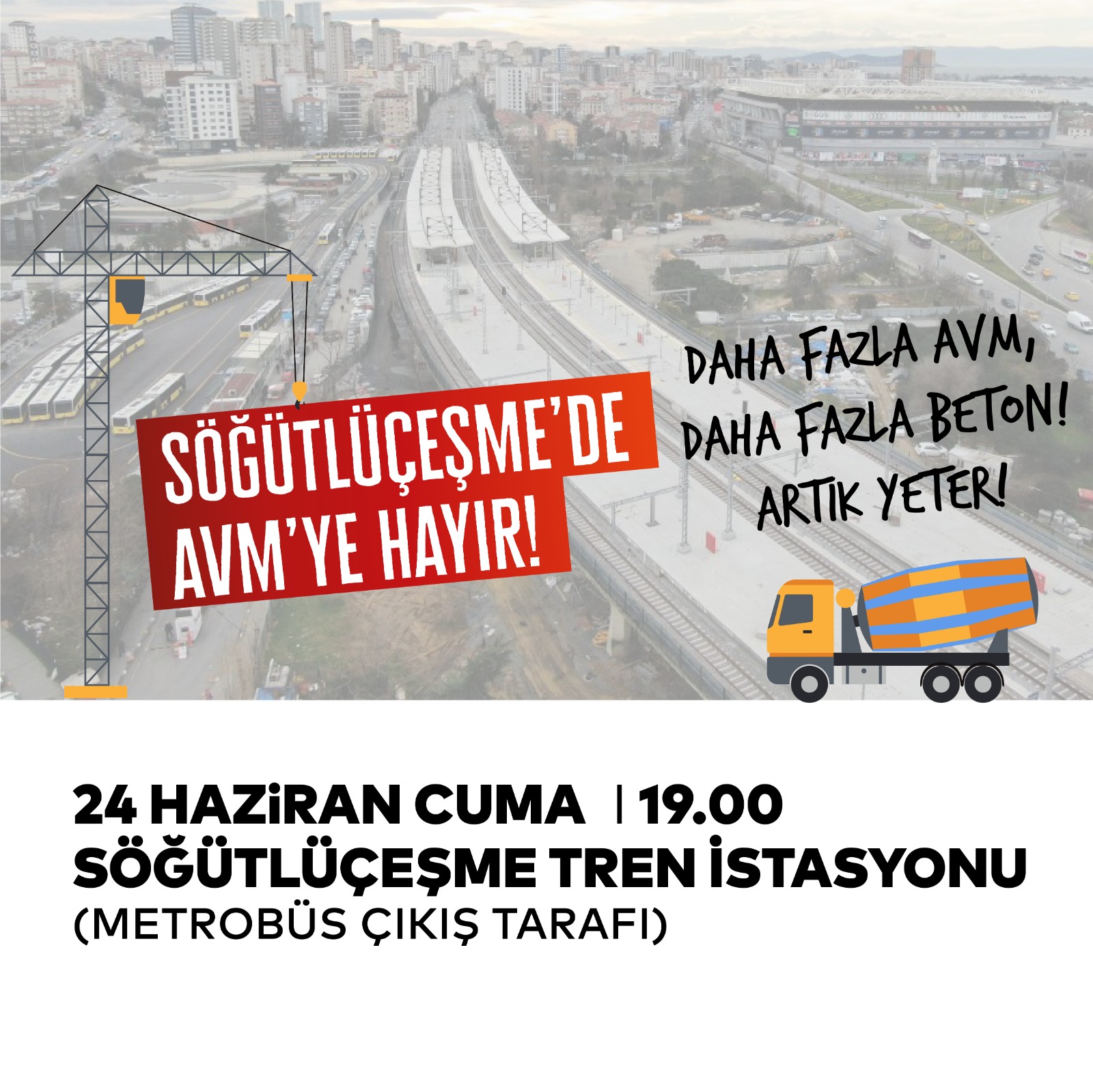 Söğütlüçeşme’deki tren istasyonunda yapımı planlanan AVM/Gar Projesi’nden vazgeçtiğini duyurmasına rağmen projeyi yeniden düzenleyen TCDD yeni proje için tekrardan Fıratcan İnşaat ile anlaştı. Tren istasyonunu çevreleyen yeşil alanın ranta açılmasını istemeyen Kadıköylüler, Söğütlüçeşme Tren İstasyonu önünde yapılacak eylem için çağrıda bulundu
