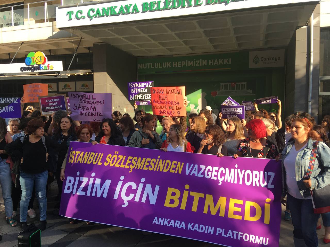Eylemde sık sık “İstanbul Sözleşmesi yaşatır”, “Erkek vuruyor devlet koruyor”, “Bağır herkes duysun erkek şiddeti son bulsun”, “Susma haykır eşcinseller vardır” ve “AKP’den hesabı kadınlar soracak” sloganları atıldı. Kadınlar açıklama yaptı.