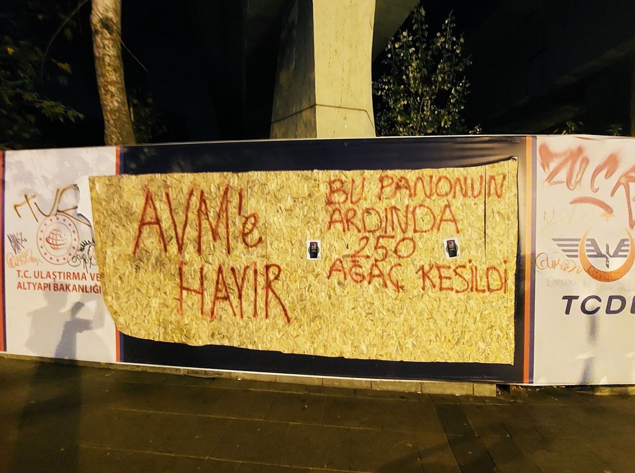 Ağaçların kesildiği ve sondajın yapıldığı alandaki TCDD’nin “Viyadük ve Çevre Düzenlemesi” pankartlarının yerine Kadıköylüler “AVM’ye hayır!”, “Ruhsatsız Rant Projesi”, “Burada 250 ağaç kesildi”, “Panonun ardından katliam var” gibi yazılamalar yaptı.