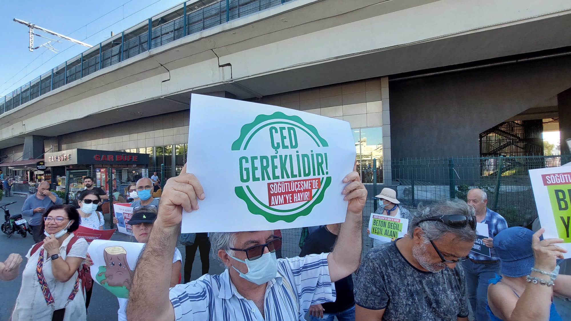 Söğütlüçeşme AVM/Gar projesinin Çevre ve Şehircilik Bakanlığı’nın sitesinde bir gün askıda kaldığı ve hemen indirildiği vurgulanan açıklamada “TMMOB Mimarlar odası ve Kadıköy Belediyesi yürütmenin iptali için dava açtı. İstanbul Valiliği AVM/Gar projesi için ÇED raporuna ihtiyaç yoktur diye resmi açıklama yaptı, sonucunda 1 ay içinde 250 ağaç yok edildi. Kadıköy Belediyesi ve Mimarlar Odası, ÇED raporu gereksizdir kararına dava açtılar ve süreç devam etmektedir” ifadelerine yer verildi.