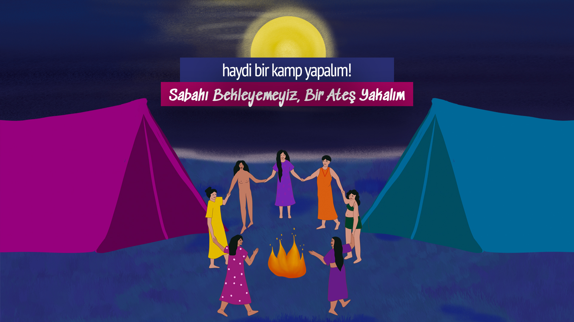 Pandeminin, pandemiyle birlikte daha da derinleşen yeniden üretim krizinin, ekonomik krizin ve erkek-devlet şiddetinin ve üzerimize yığılan bakım emeğinin ortasında feminist bir dünya hayaliyle tüm kadınlara bir çağrımız var: “Haydi bir kamp yapalım! Sabahı bekleyemeyiz bir ateş yakalım”