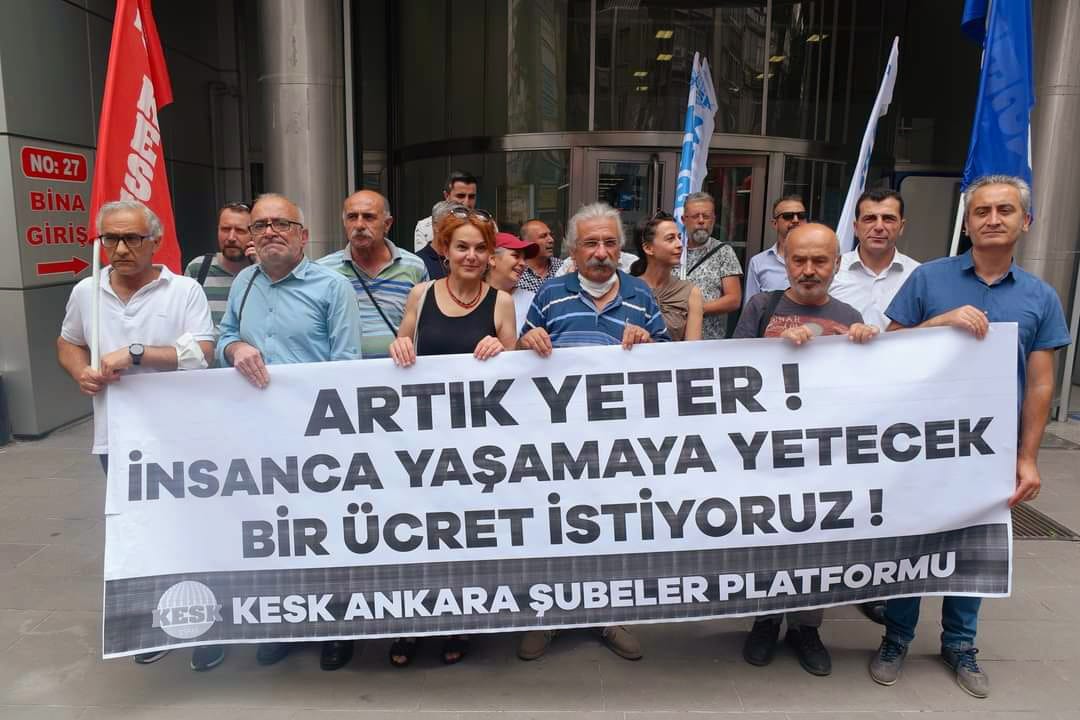 Kamu Emekçileri Sendikaları Konfederasyonu (KESK) Ankara Şubeler Platformu, “İnsanca yaşanacak bir ücret istiyoruz” diyerek bordro yakma eylemi düzenledi