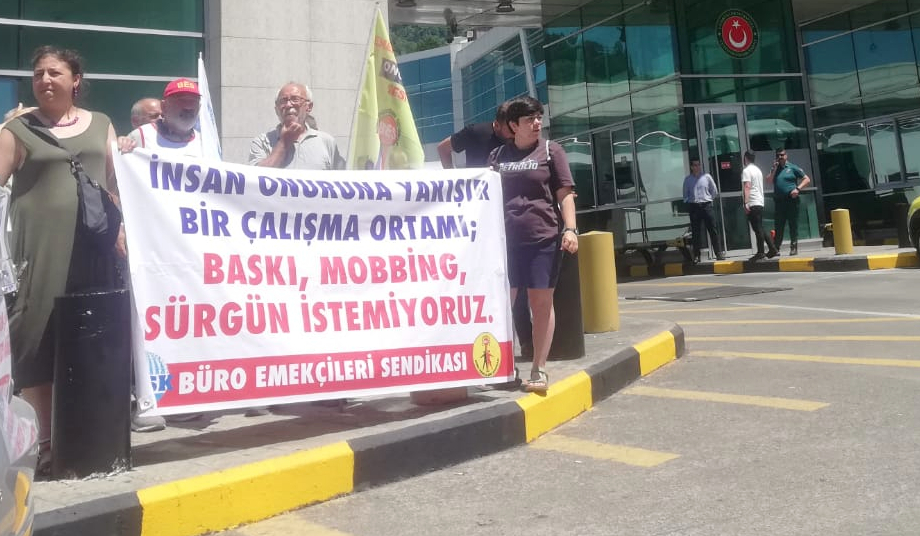 Büro Emekçileri Sendikası Sarp Gümrük Müdürlüğü önünde Kaçkar Gümrük ve Dış Ticaret Bölge Müdürü’nün çalışanlara baskı ve mobbing uygulamasına karşı eylem yaptı. BES Artvin Temsilcisi Cavit Aydın’ın okuduğu basın açıklamasında şunlar söylendi: