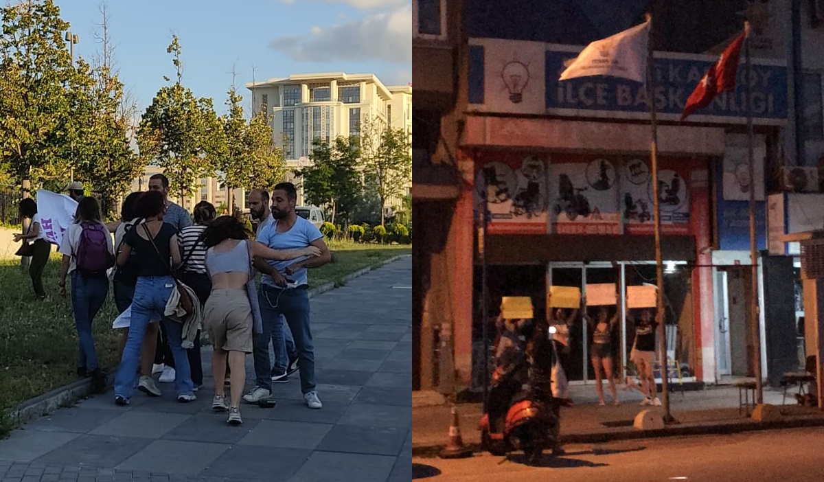 Üniversiteli Feminist Kolektif, AKP Kadıköy İlçe Başkanlığı önünde Danıştay’ın İstanbul Sözleşmesi kararına karşı eylemdeydi.