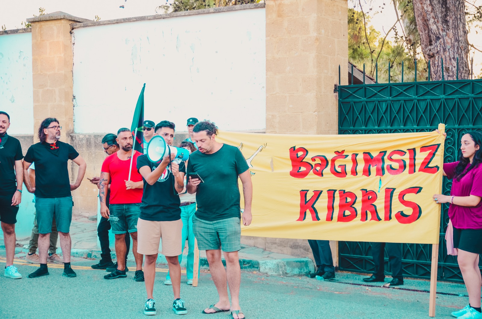 Kıbrıslı devrimcilerin karşısına sadece Türkiye Büyükelçiliği önünde polis çıktı.