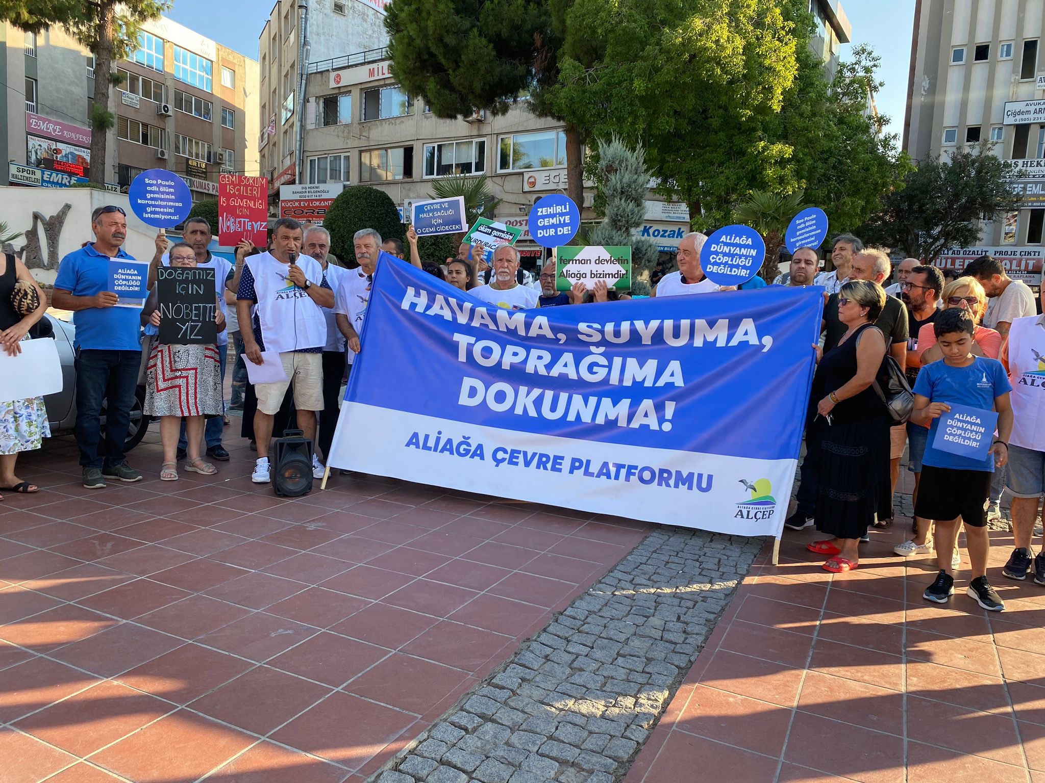 Aliağa Çevre Platformu’nun (ALÇEP) çağrısıyla Aliağa Demokrasi Meydanı’nda yapılan basın açıklamasında nöbet eyleminin her gün saat 19.30’da başlayacağı bildirildi. “Havama, suyuma, toprağıma dokunma!”, “Aliağa dünyanın çöplüğü değildir” pankartlarının açıldığı eylemde yaşam savunucuları, bir avuç sermayedarın kâr hırsına boyun eğmeyeceklerini söyledi.