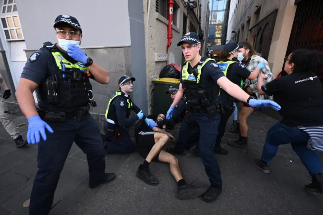 Eylemlerde yer yer polis saldırısı da görüldü. Kraliçenin taziye defterine “Monarşiyi kaldırın” yazan bir Avustralyalı gözaltına alınırken Melbourne’de de polis saldırısı görüldü.