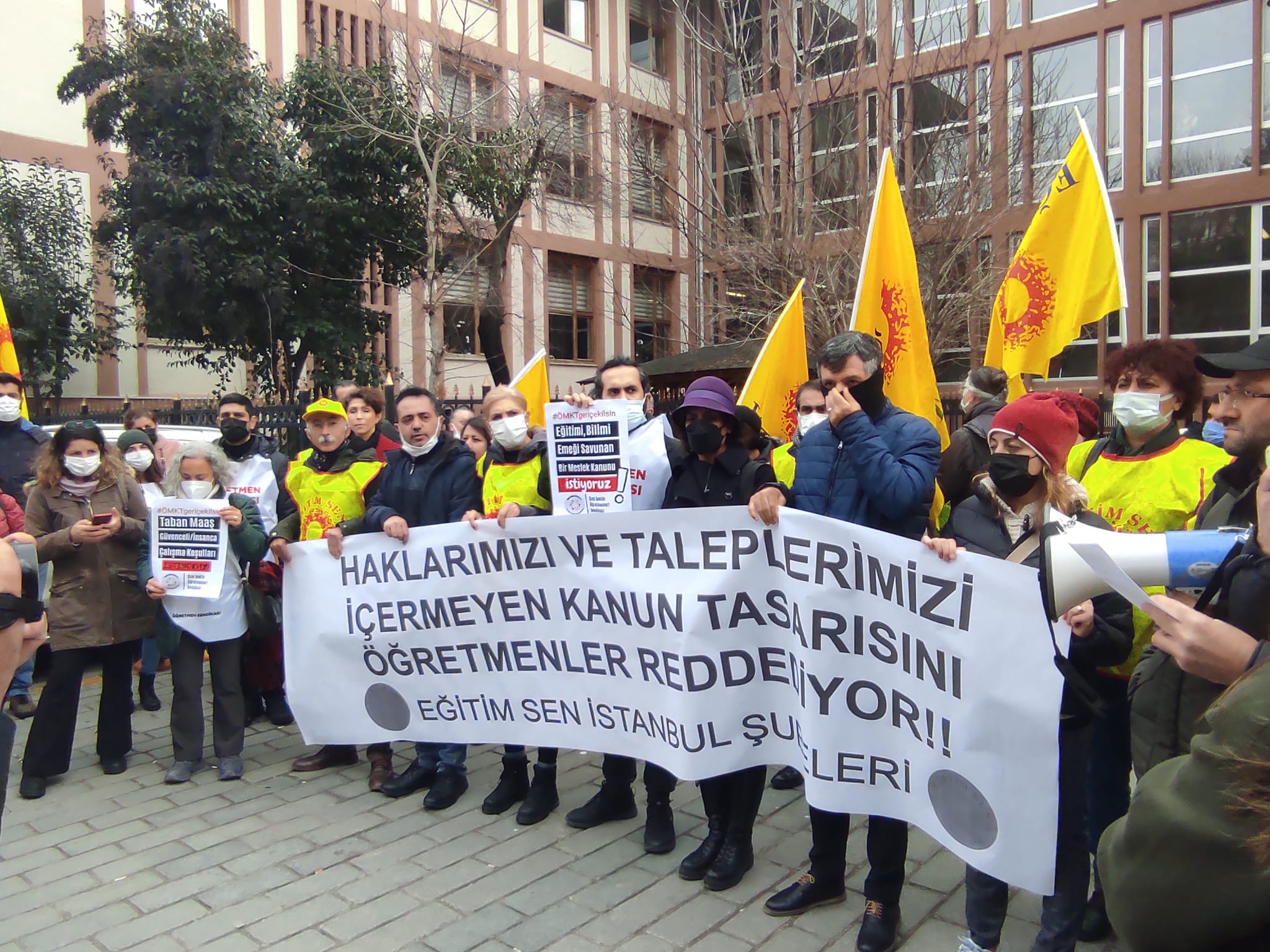 Eğitim Sen, Öğretmenlik Meslek Kanunu’nun öğretmenlerin iradesi dışında, öğretmenlerin temel sorunlarının ve taleplerinin dikkate alınmadan hazırlandığını belirterek, “Sosyal, mesleki ve özlük haklarımızla ilgili taleplerimiz, eleştirilerimiz ve önerilerimiz doğrultusunda demokratik ve katılımcı bir anlayışla hazırlanacak gerçek bir meslek kanunu istiyoruz” dedi