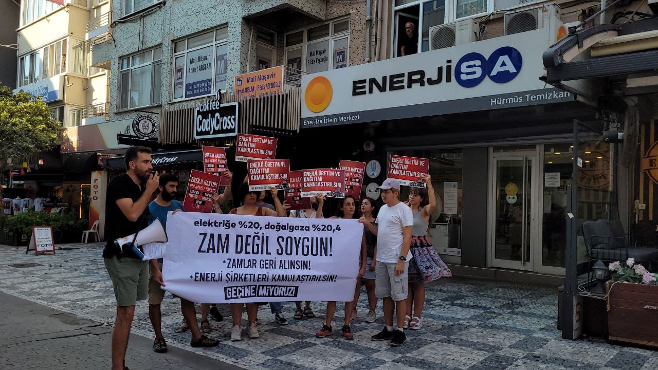 Doğalgaz ve elektrik fiyatlarına bugün (1 Eylül) itibarıyla yapılan zamlara karşı Kadıköy Geçinemiyoruz Platformu EnerjiSA ödeme noktasında eylemde bir araya geldi. Eylemde “Elektriğe %20, doğalgaza %20,4 zam değil soygun! Zamlar geri alınsın! Enerji şirketleri kamulaştırılsın” yazılı pankart açıldı. Yapılan açıklamada milyonlarca insanın ayın sonunu bırakın ortasını getiremezken elektrik ve doğalgaza konutlarda yapılan zam doğrudan, sanayiye yapılan zam ise dolaylı olarak hayat pahalılığı olarak geri döneceği ifade edildi.