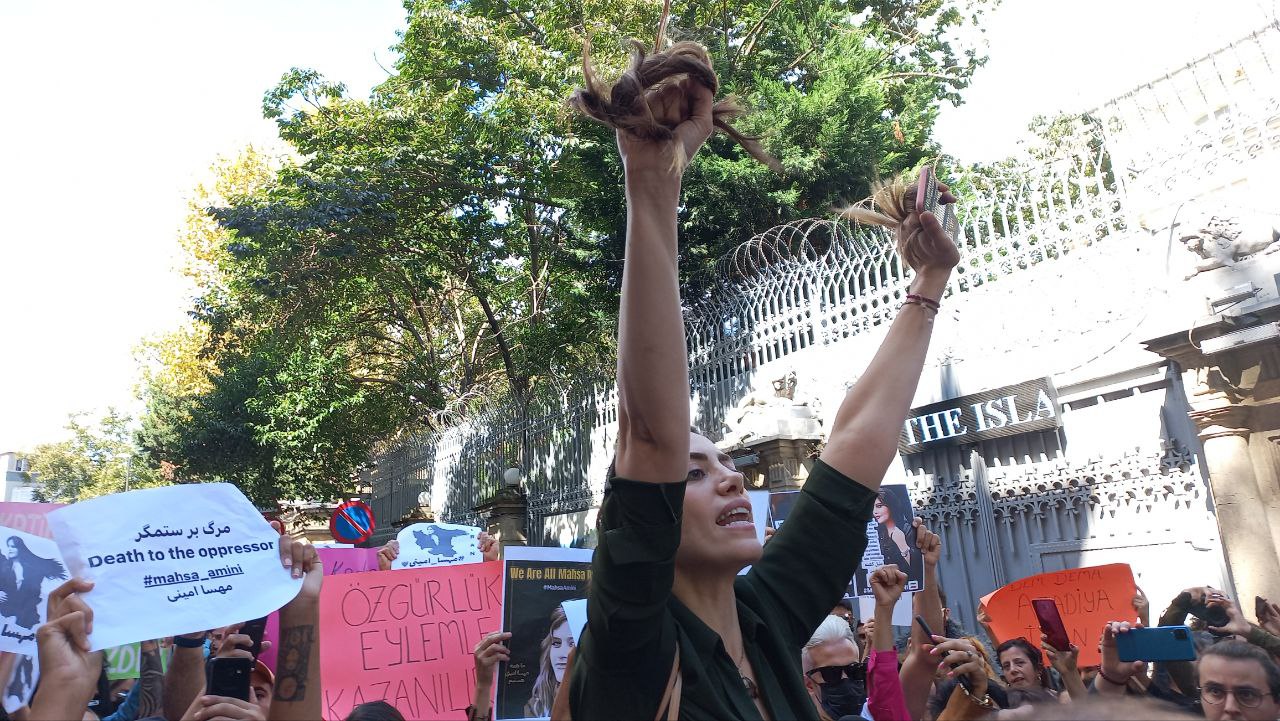 Mahsa Amini’nin ahlak polisi olarak da bilinen İrşad devriyeleri tarafından öldürülmesine karşı Türkiye’de eylemler sürüyor. Kadınlar Birlikte Güçlü’nün çağrısıyla kadınlar İstanbul’da İran Başkonsolosluğu önünde açıklama yapmak için buluştu. Çağrıya İranlılar da geldi. Başkonsolosluğun etrafı ise polis ablukası altındaydı.